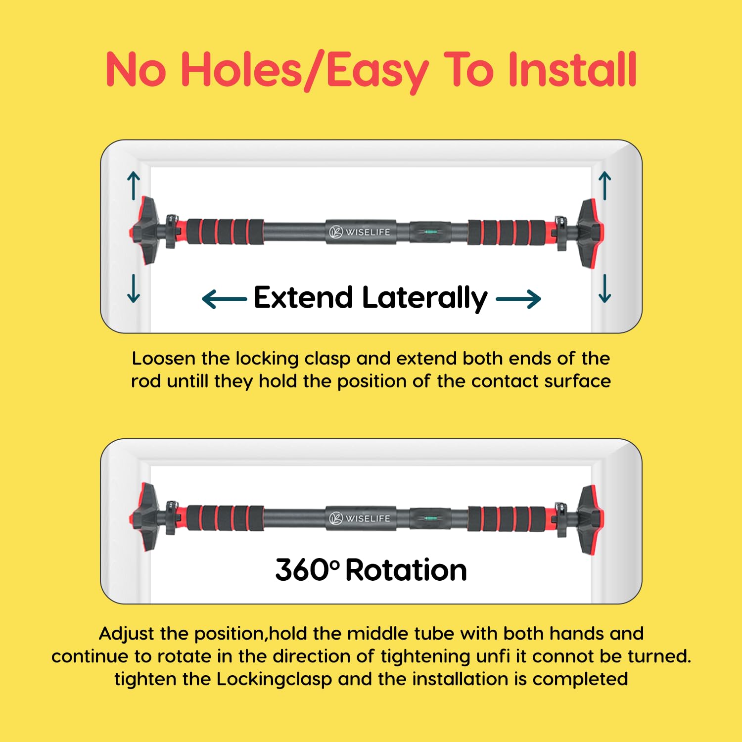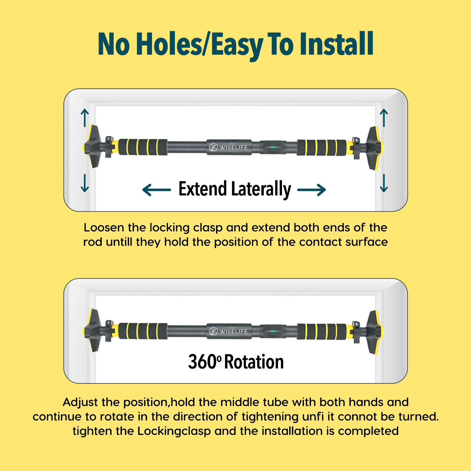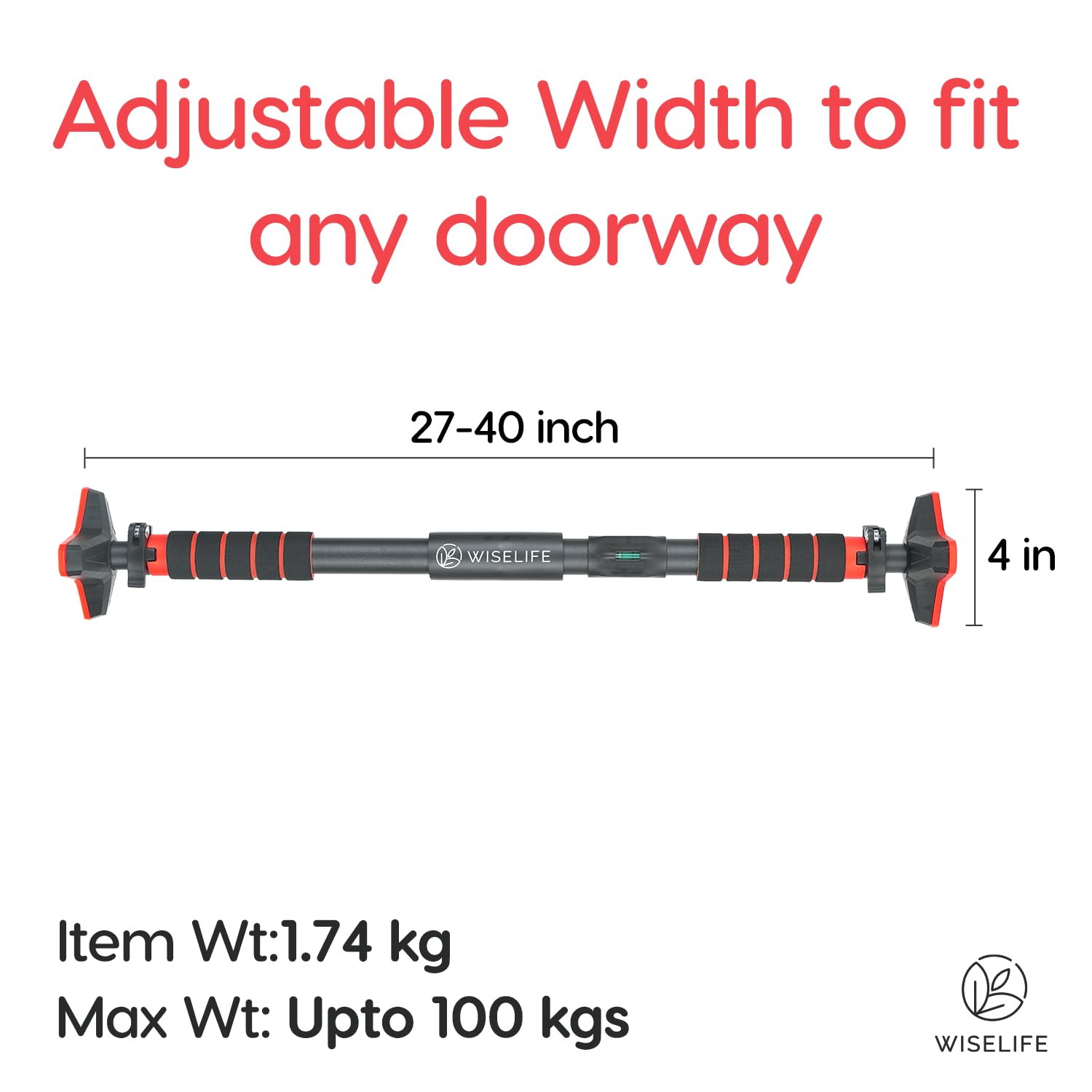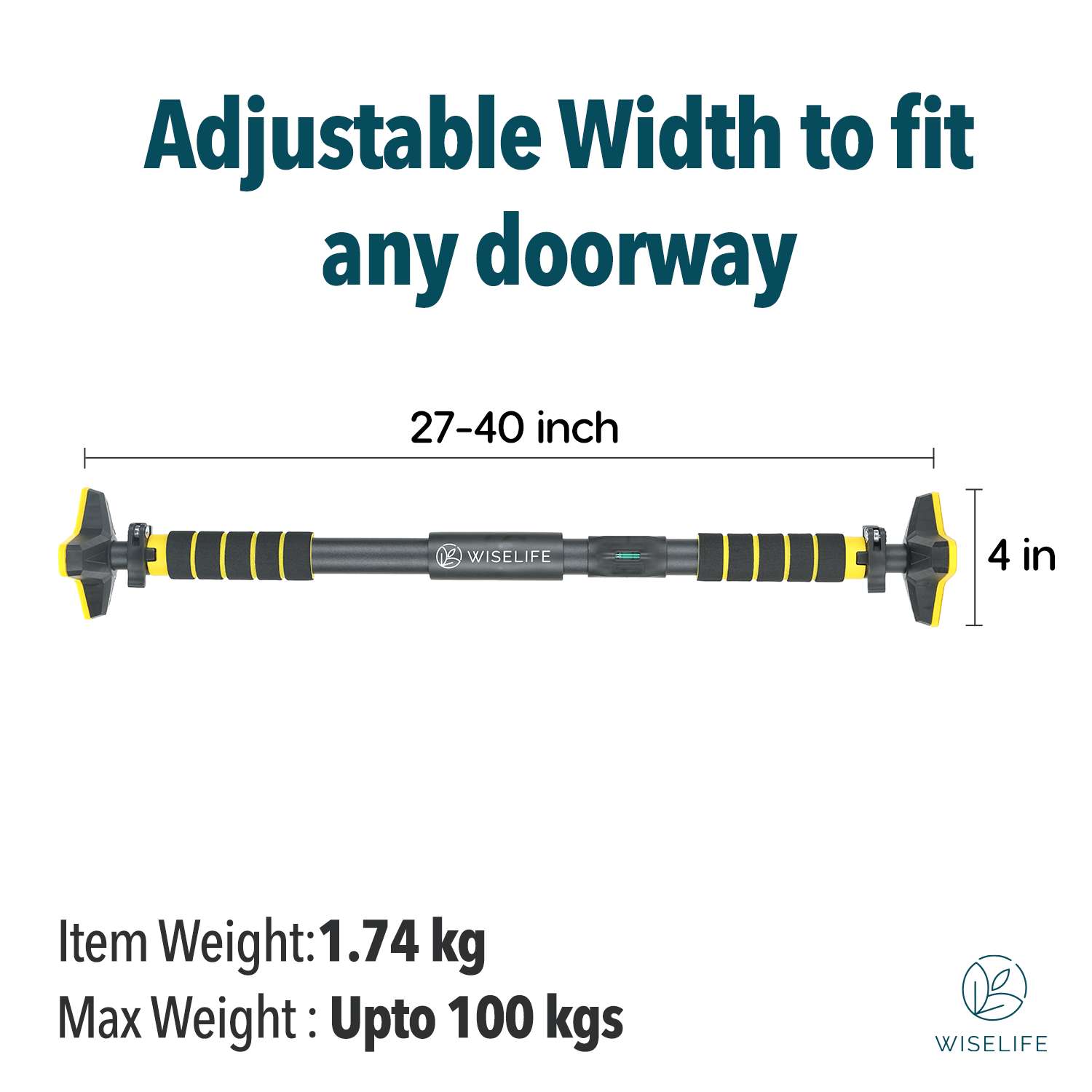 - ADJUSTABLE LENGTH: WiseLife Pull-Up Bar is designed in such a way that you can make it fit in between any Door frame and wall mount from a length of 27-40 inches.