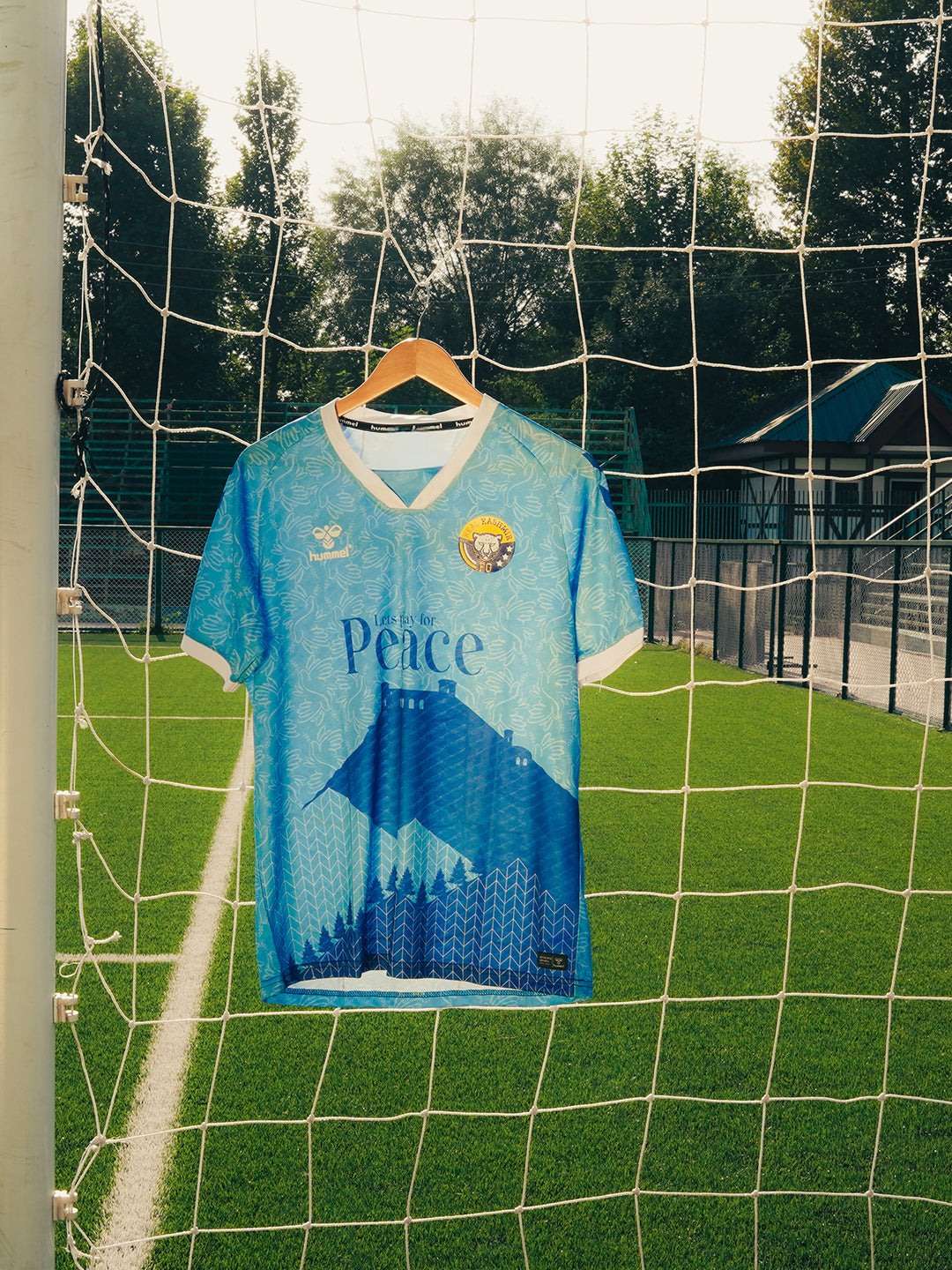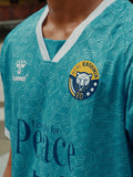 The Real Kashmir FC Peace Jersey spreads a powerful message with a design inspired by Hari Parbat Fort in Srinagar, Kashmir — a historic site that houses a mosque, temple, and gurudwara, symbolizing unity and togetherness. The soothing sky-blue tone reflects the calm and harmony associated with peace, while also evoking the vastness of the open sky where hope and freedom live. The jersey includes a V-neck crafted from premium jacquard fabric, this jersey blends performance comfort with meaningful inspiration and a spirit of hope. Finished with dove motifs and silicone logo details, it stands as a symbol of sport, purpose, and peace. Beyond design, it carries a greater mission: changing the world through sport — a vision brought to life in partnership with Real Kashmir FC.
