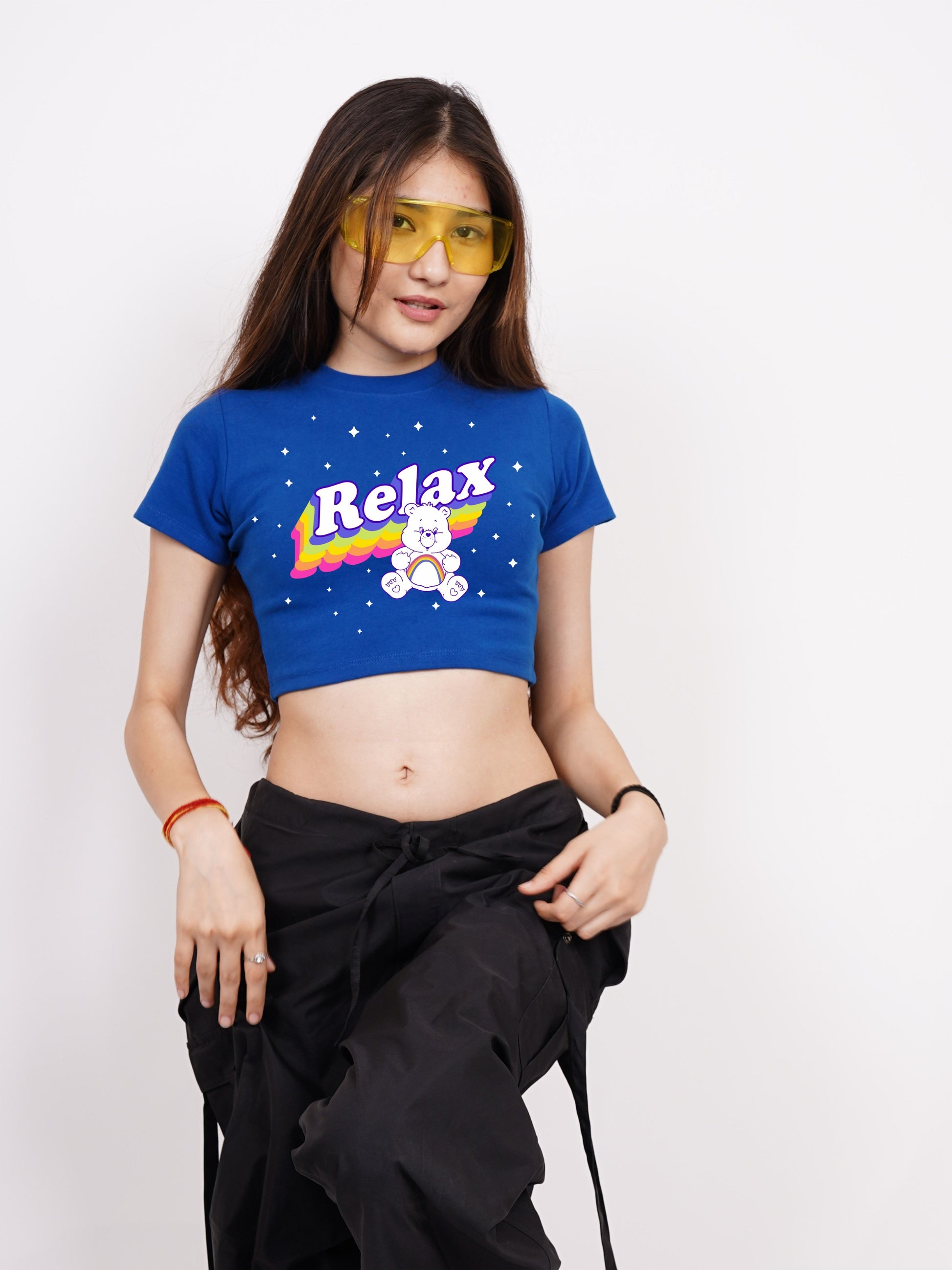Relax : Burger Bae Round Neck Crop Baby Tee For Women