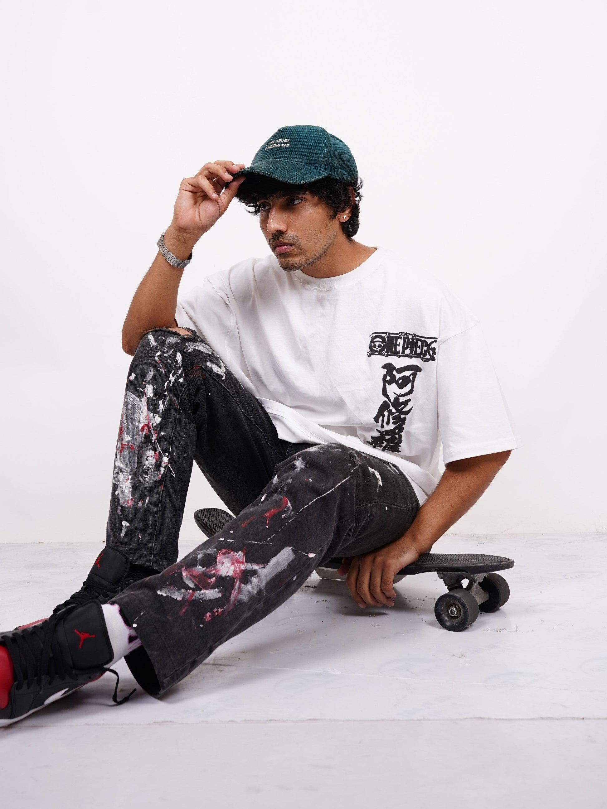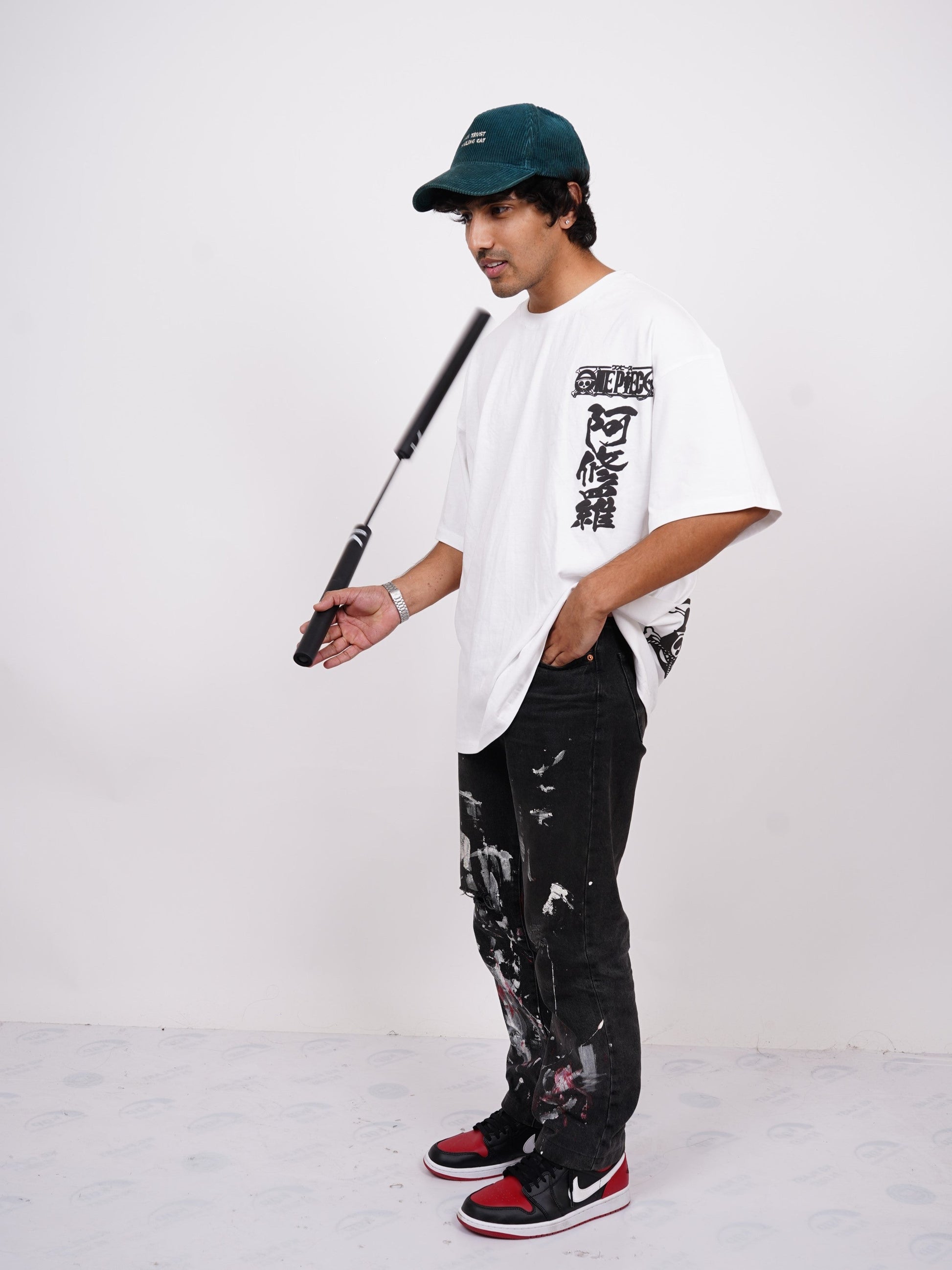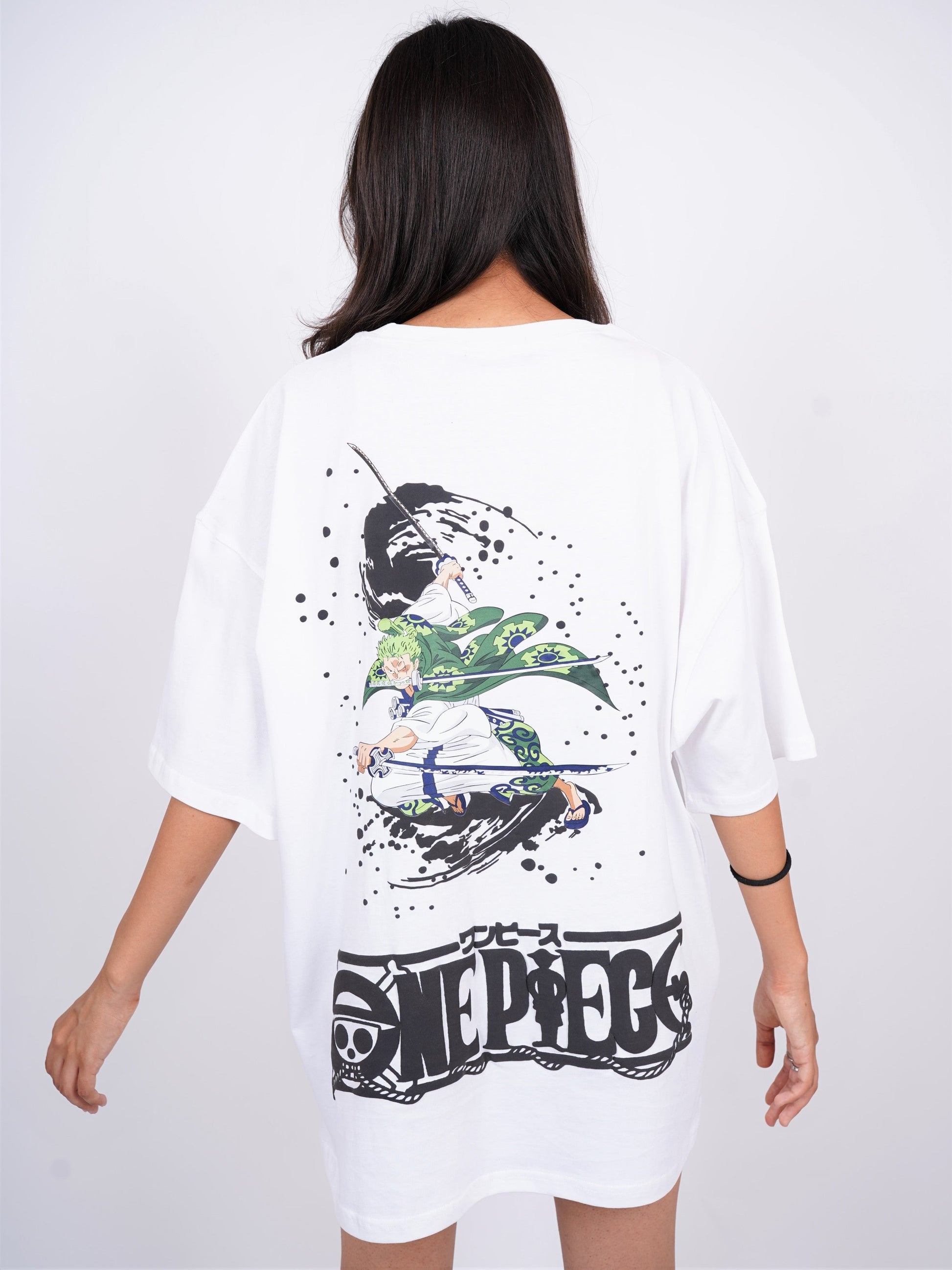 Roronoa zoro : One Piece White Drop Sleeved Tee For Men and Women