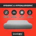 Waking up with neck pain or discomfort can ruin your day. The Samson Cervical Pillow Contoured is specifically designed to address this problem by providing the perfect blend of ergonomic support and luxurious comfort. Its contoured shape cradles your head and neck, promoting proper spinal alignment for a rejuvenating sleep experience.