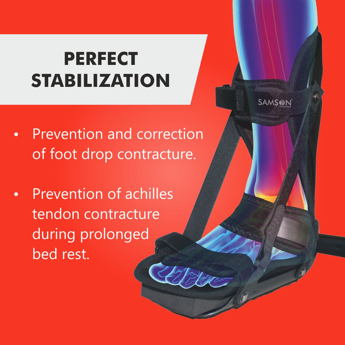 The Samson PF Night Splint is designed to provide continuous, gentle stretching for individuals suffering from plantar fasciitis, Achilles tendonitis, or heel pain. Worn during sleep, this splint helps reduce morning stiffness, relieve discomfort, and promote faster recovery. Its ergonomic and adjustable design ensures comfort throughout the night while delivering effective results.