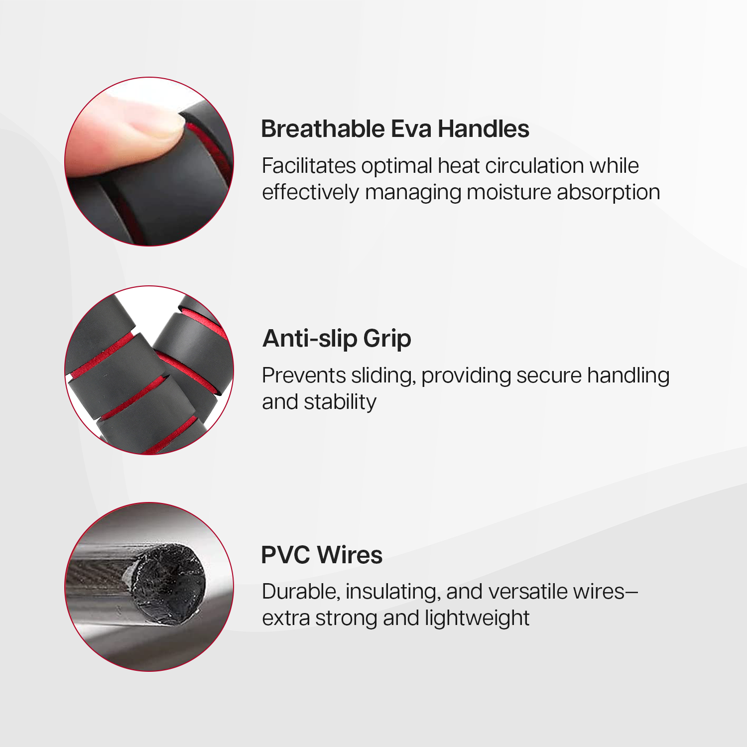 - COMFORTABLE DESIGN: The jumping rope is durable and of good quality, anti-slip foam handles, soft and comfortable. Don't worry that the skipping rope for exercise will fall off your hands