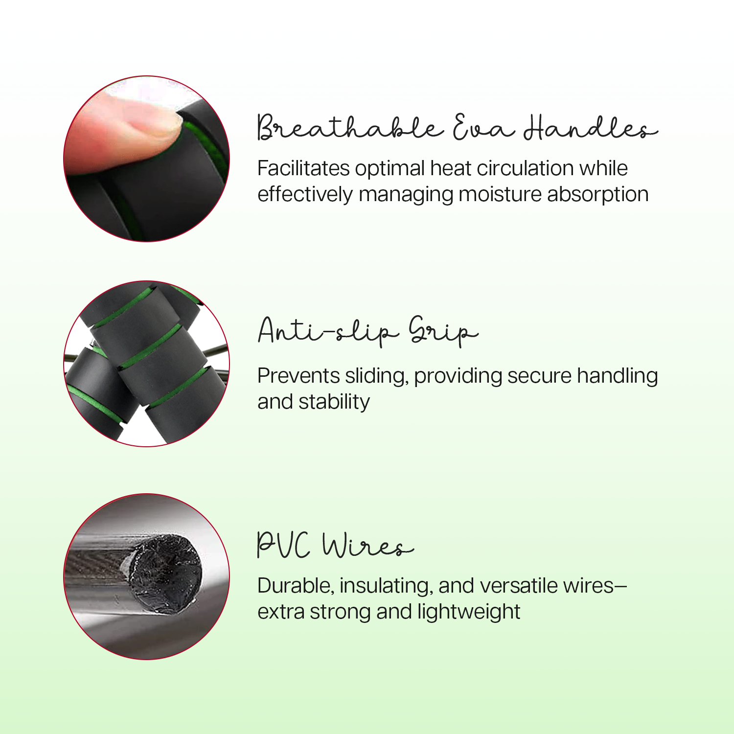 - PVC EMBEDDED WIRE ROPE: The weighted jump rope has braided steel and the wire rope is coated with PVC, which features durability and smoothness, ensures the maximum service life, and avoids cracking or breaking