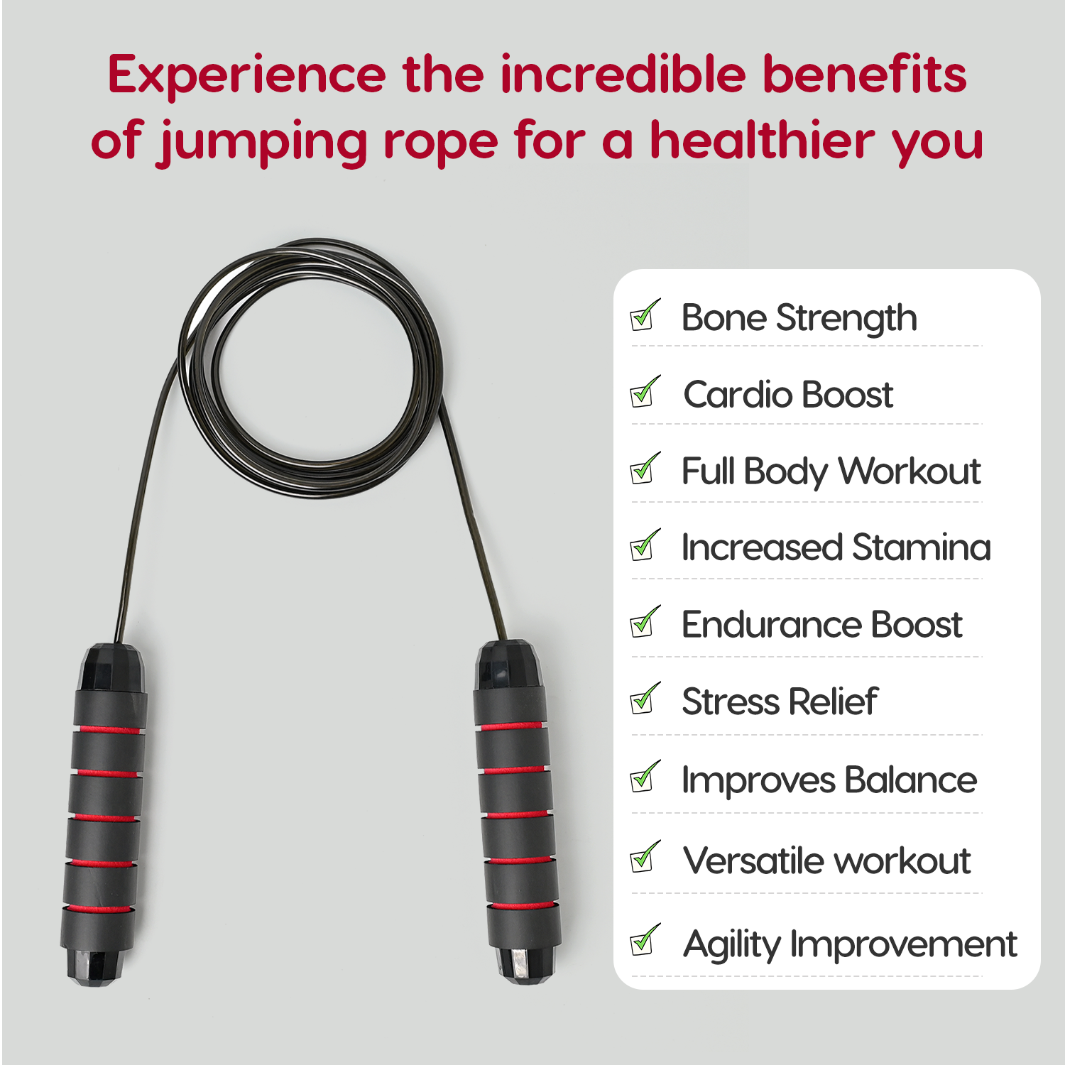- SPORTS EXERCISE ROPE: fitness jump rope is perfect for maximum fat burn, cardio endurance and to boost stamina. A great choice for cross training, calorie consumption and improve muscle tension