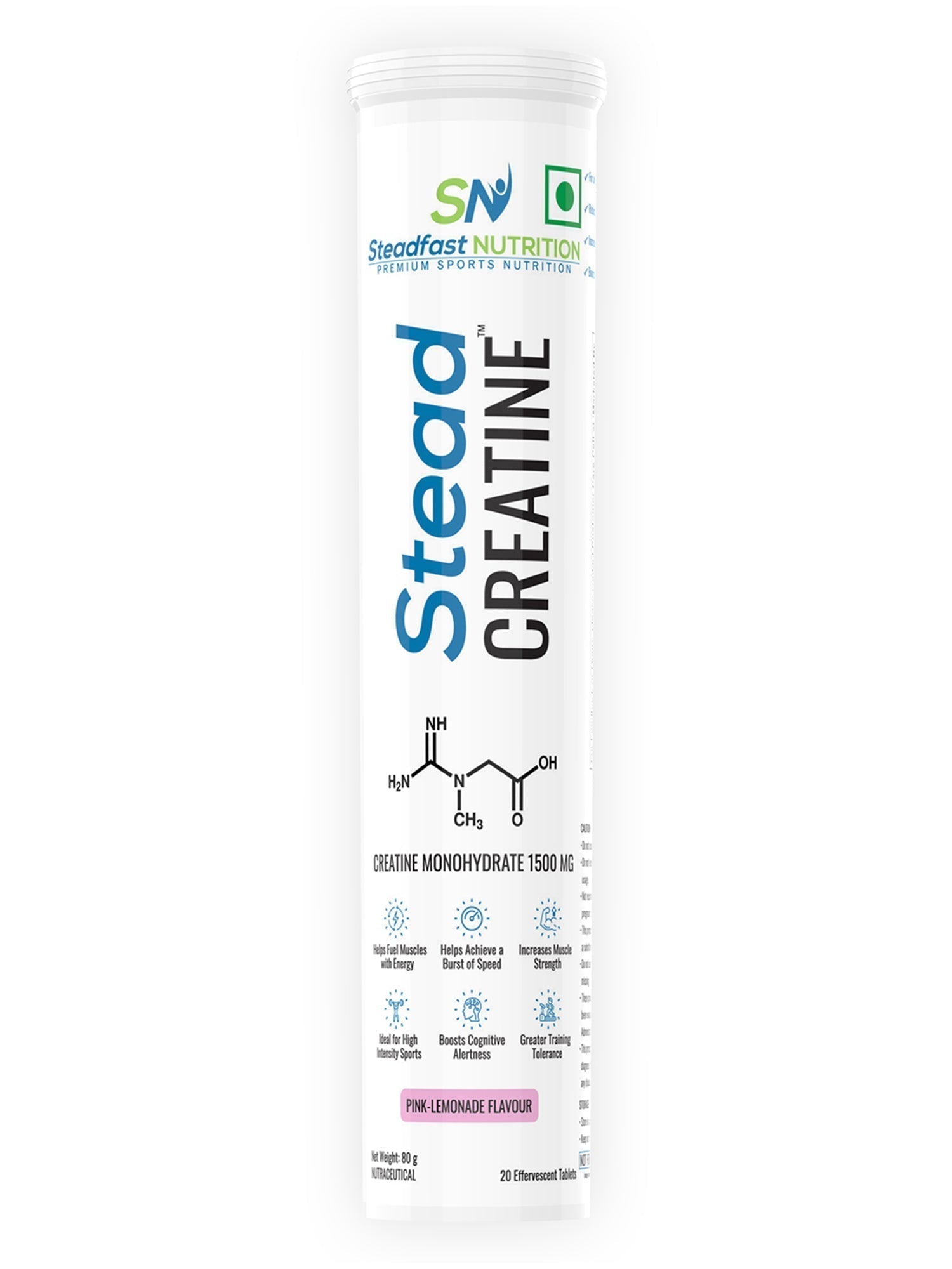 Creatine monohydrate is a popular nutritional ergogenic aid for athletes that provides the energy burst needed to perform high-intensity exercise. Each tablet of SteadCreatine™ contains 1500 mg of Creatine Monohydrate, which is safe and easy to consume.
