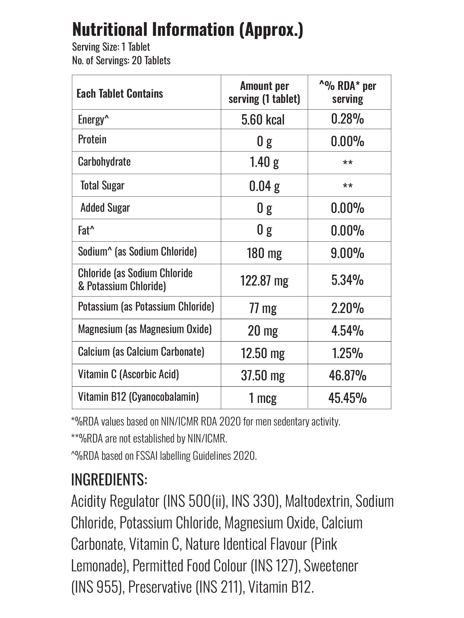 Steadlytes Instant Hydration & Energy Drink Electrolytes Pink Lemonade 20 Tabs 80g