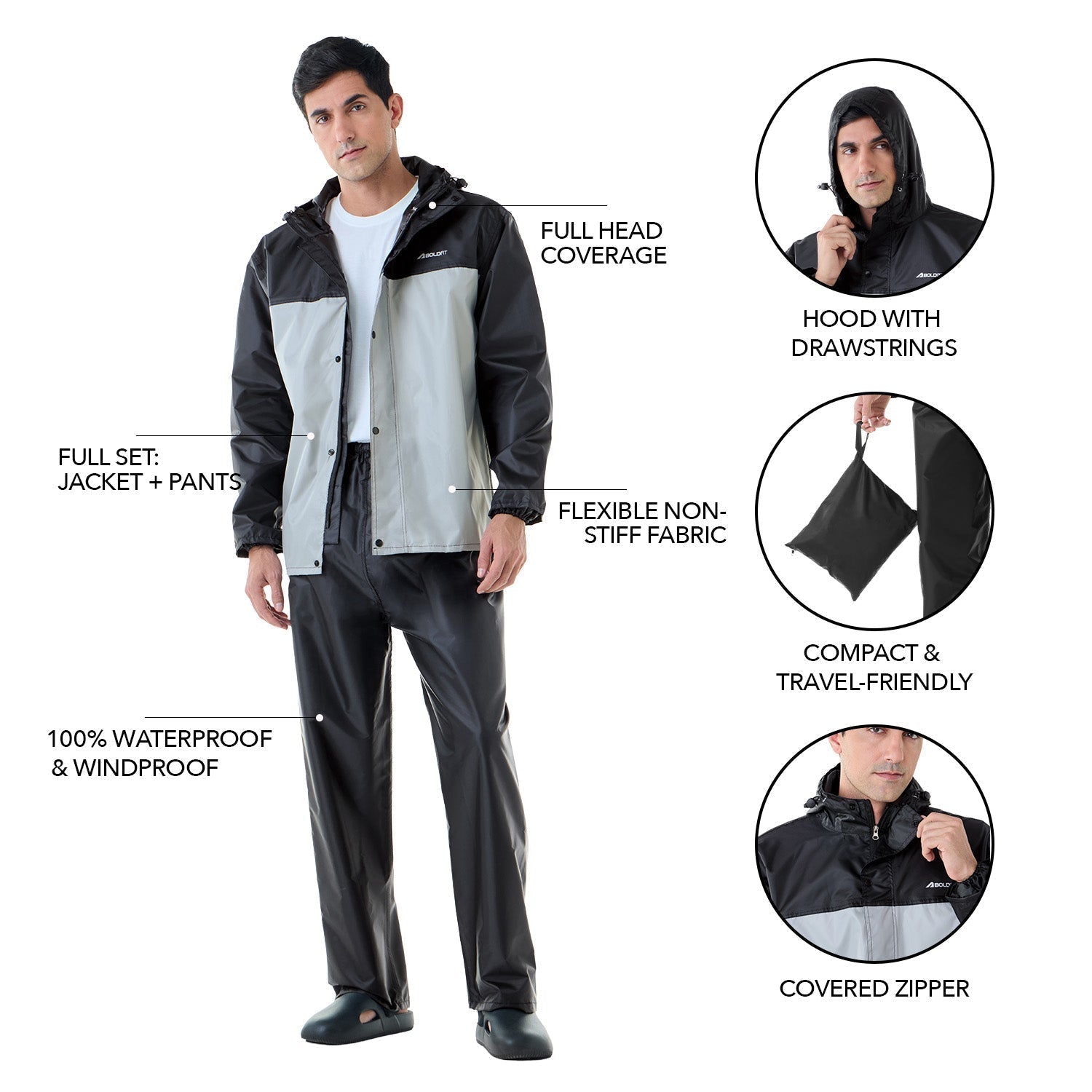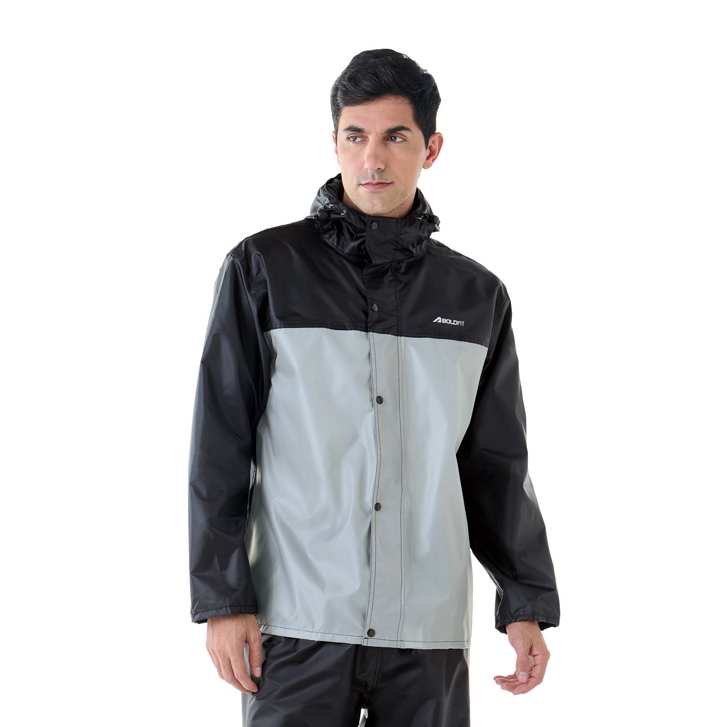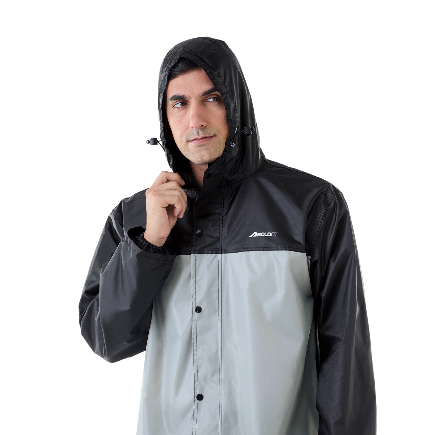 Boldfit StormBreaker Raincoat Top & Bottom Set - Black Grey