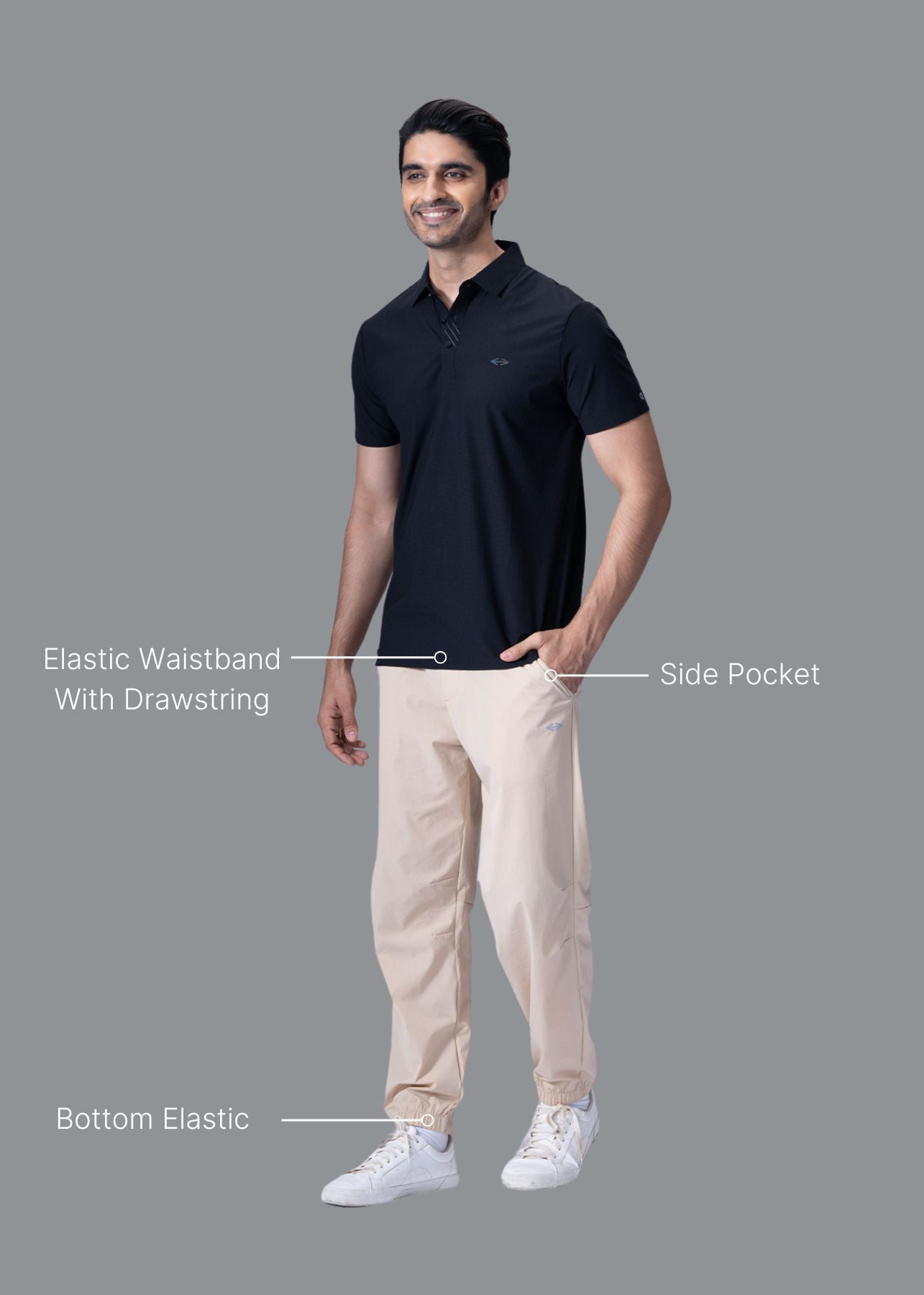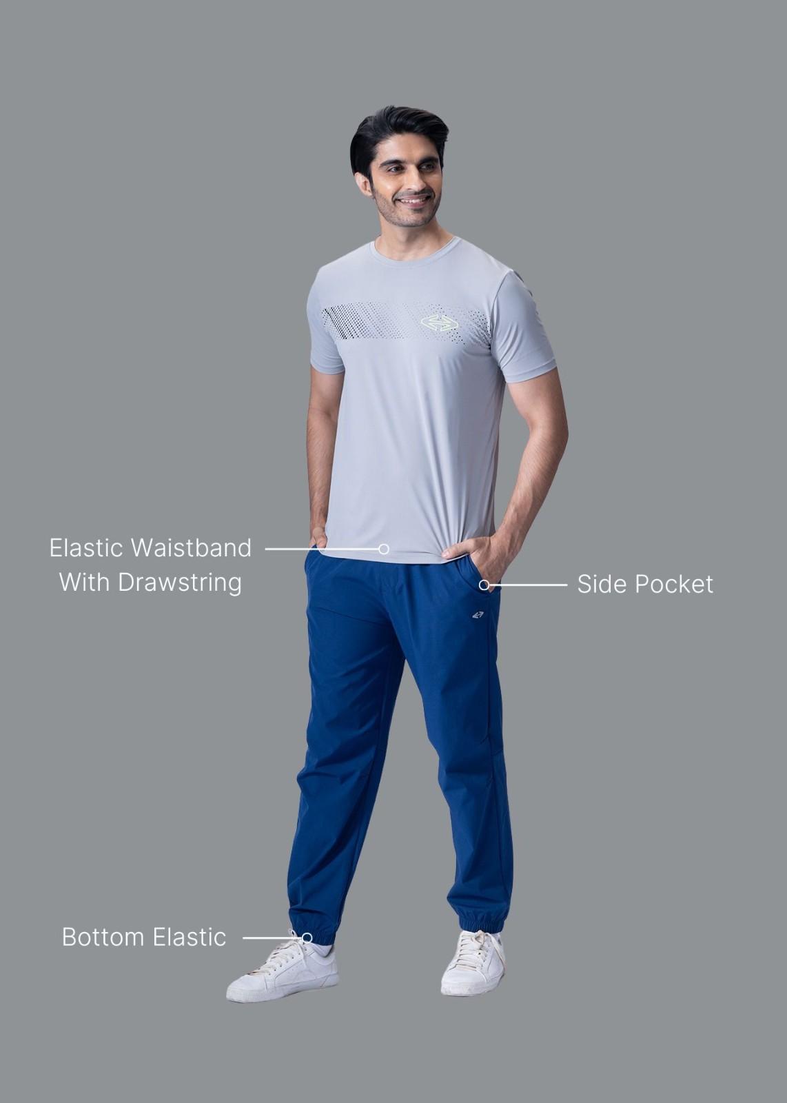 These performance joggers combine functionality with comfort, featuring a side pocket for easy storage and an elastic waistband with a drawstring for a secure, adjustable fit. The knee dart and back yoke design enhance flexibility, while the bottom elastic cuff ensures the pants stay in place during movement. Finished with reflective detailing, they offer both style and practicality for workouts or casual wear.