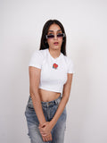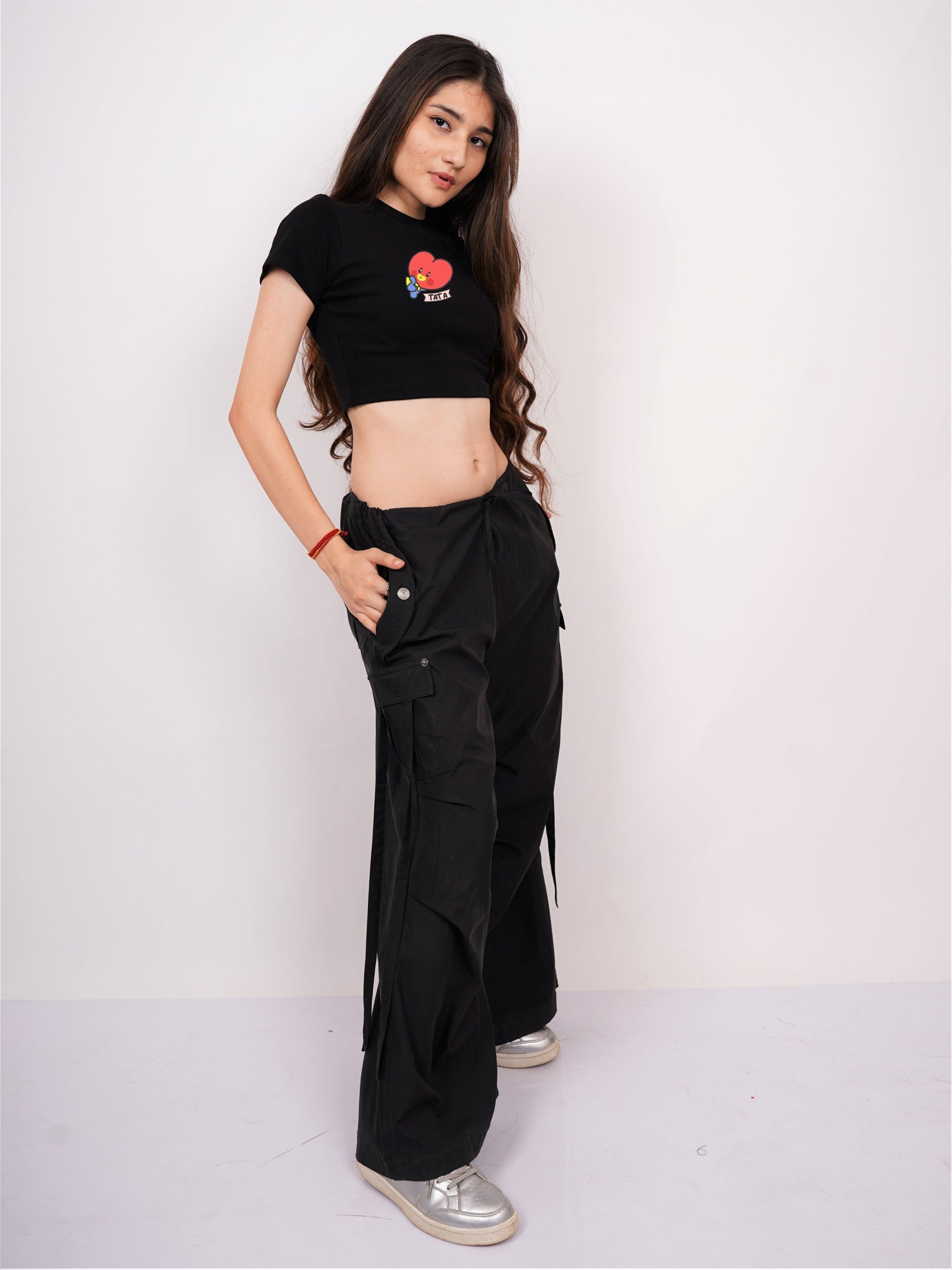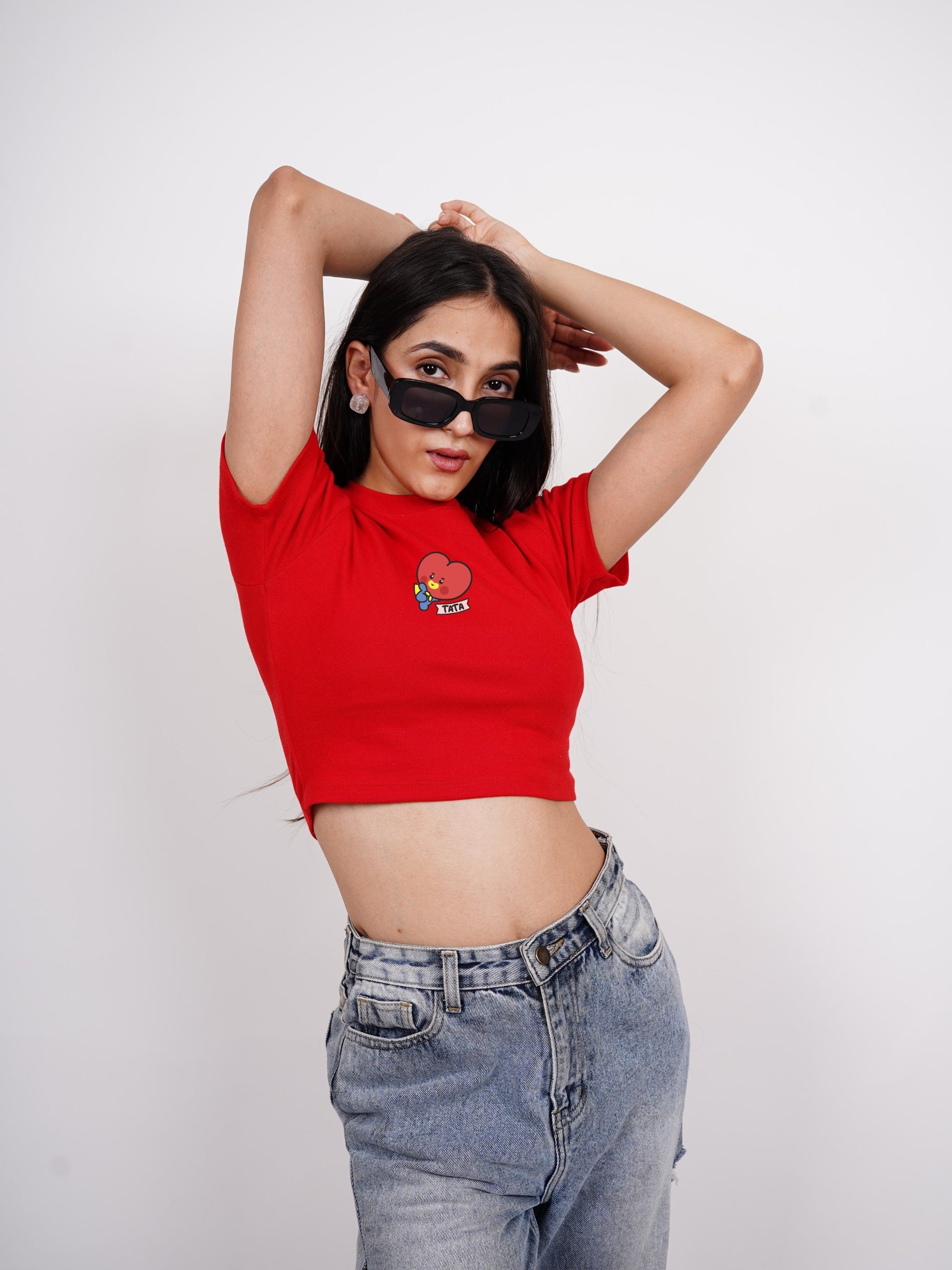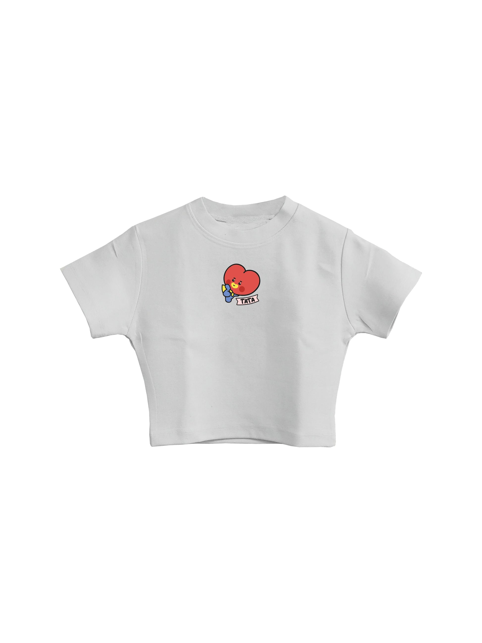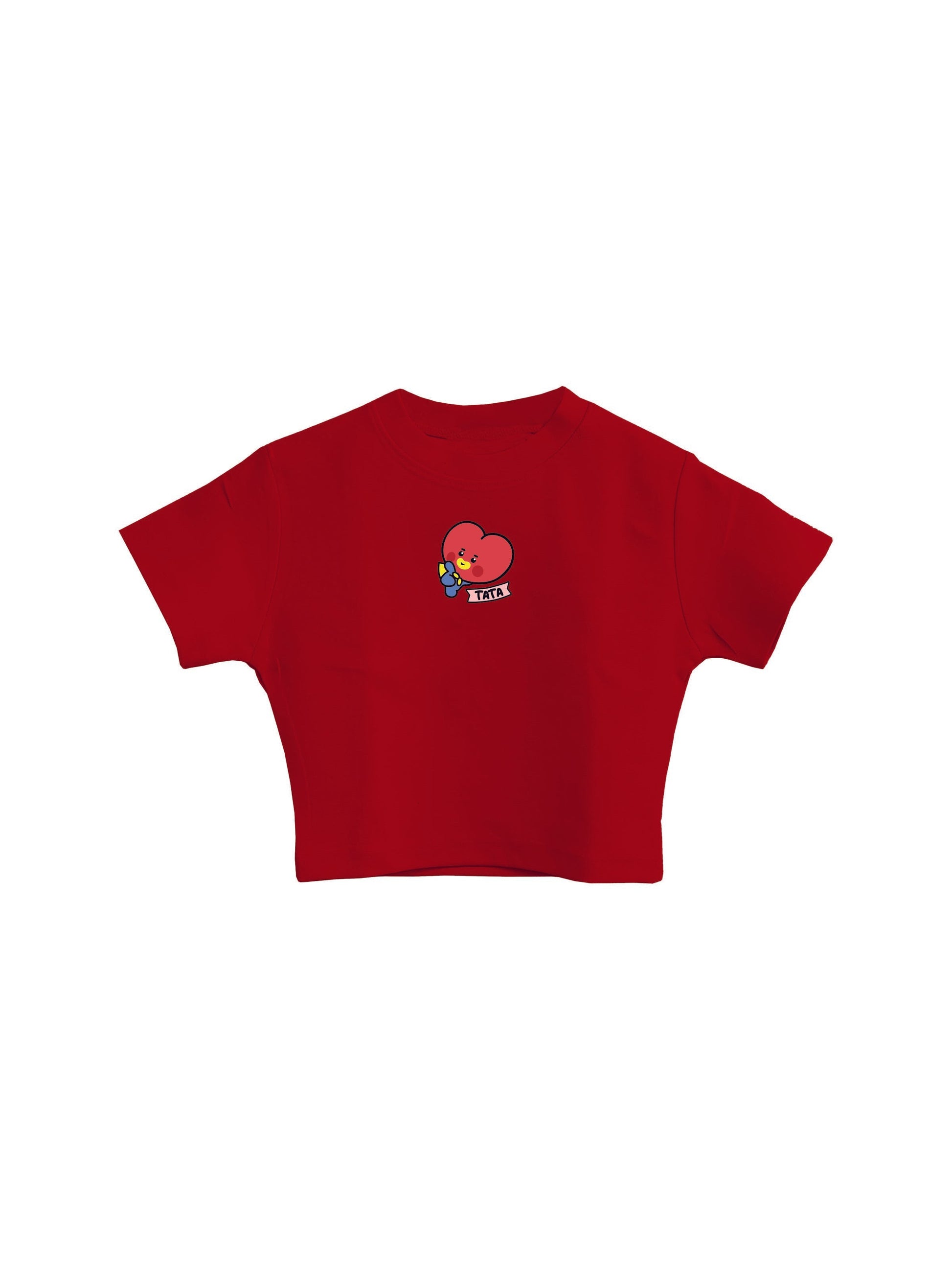 Tata BT21 : Burger Bae Round Neck Crop Baby Tee For Women