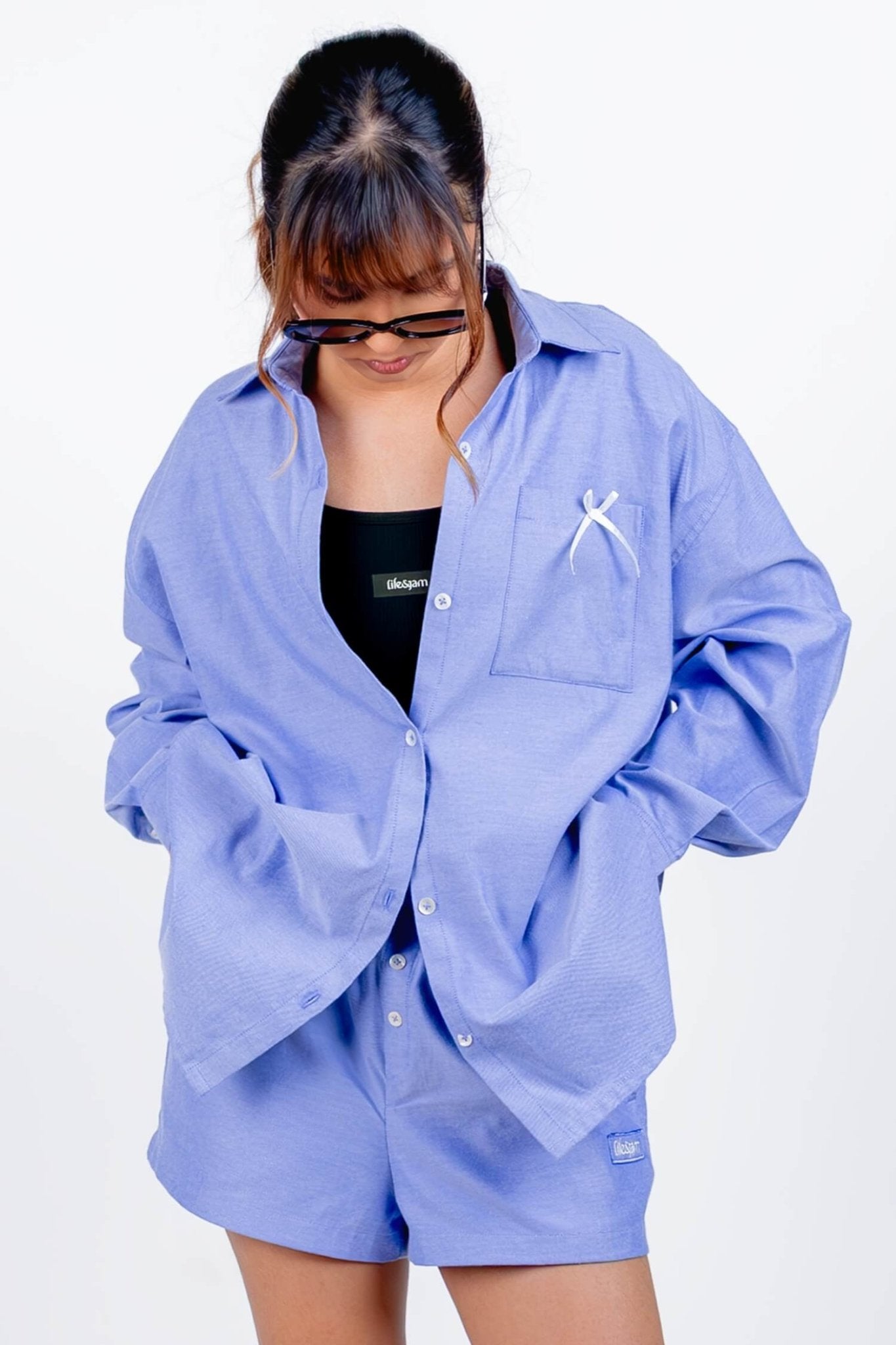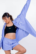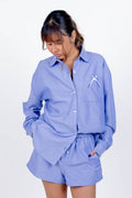 Styling Tip: Go full set energy and wear it with the matching shorts or pants - unbuttoned, bralette peeking, iced drink in hand. Hair in a claw clip, playlist on repeat, and suddenly you’re That Girl at the airport / on the beach / in your living room romanticizing life. It’s the kind of outfit that doesn’t try too hard… but eats every time.