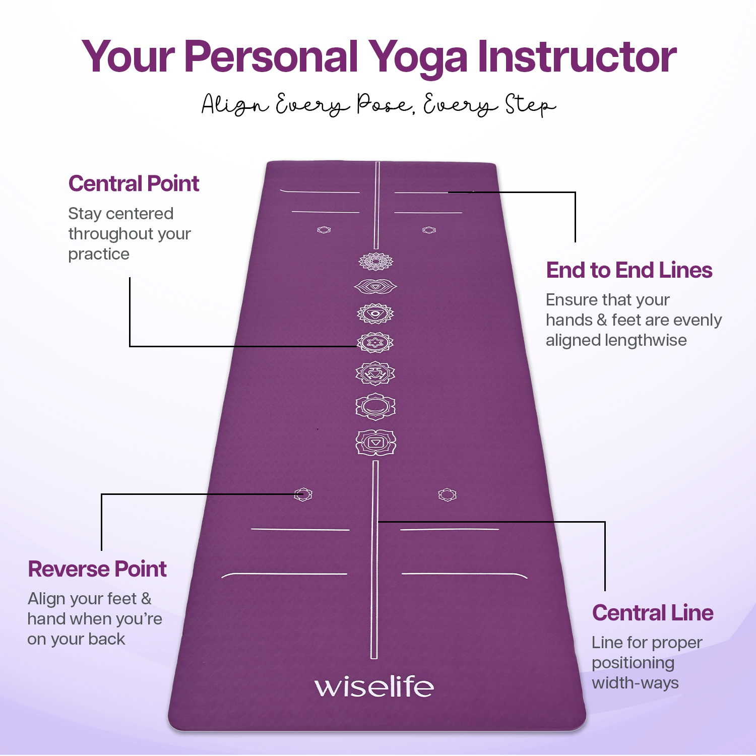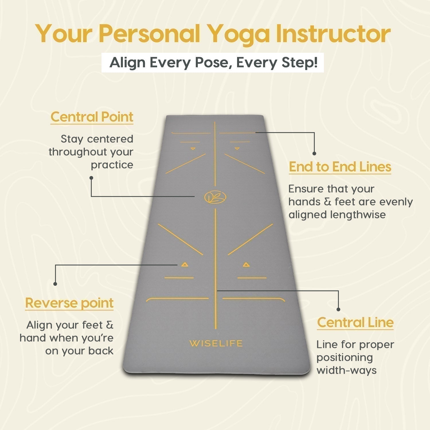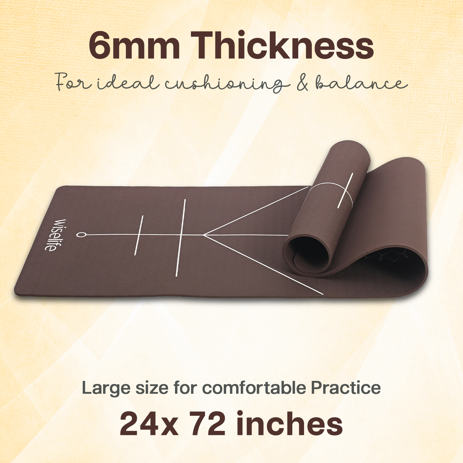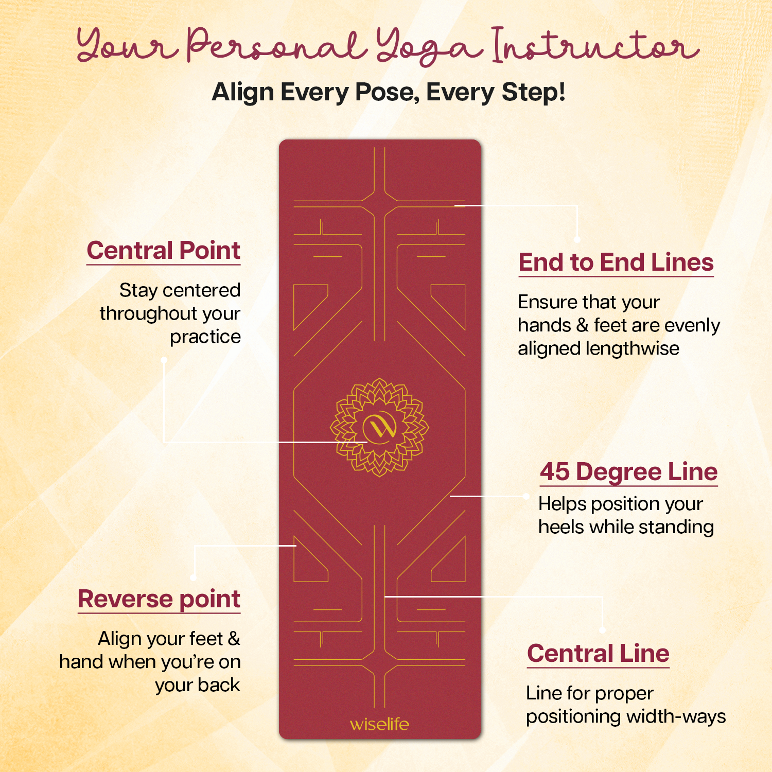 - ALIGNMENT LINES: Guided alignment lines printed directly onto the mat for easy positioning and proper alignment during yoga practice.