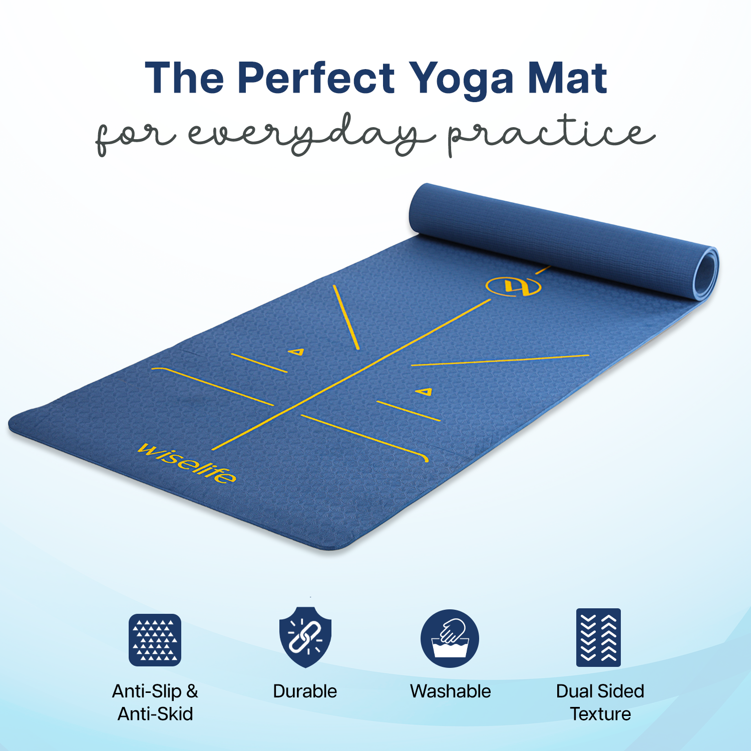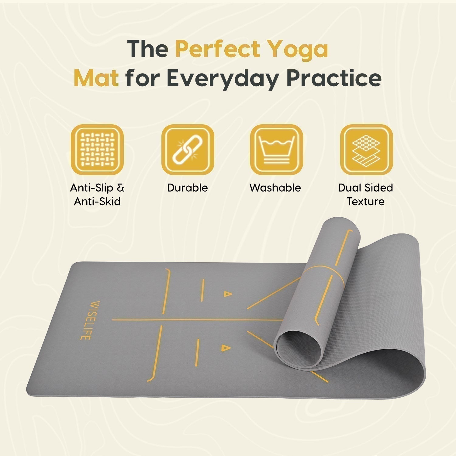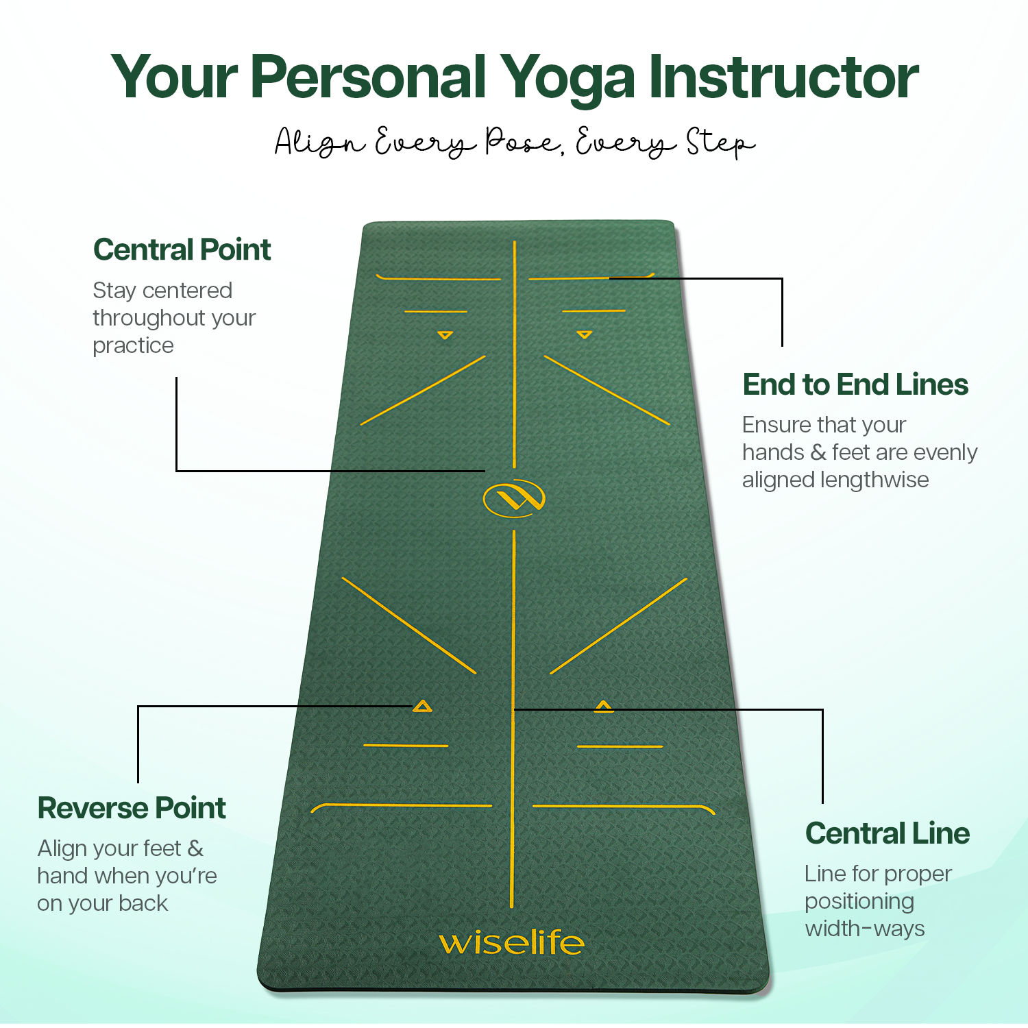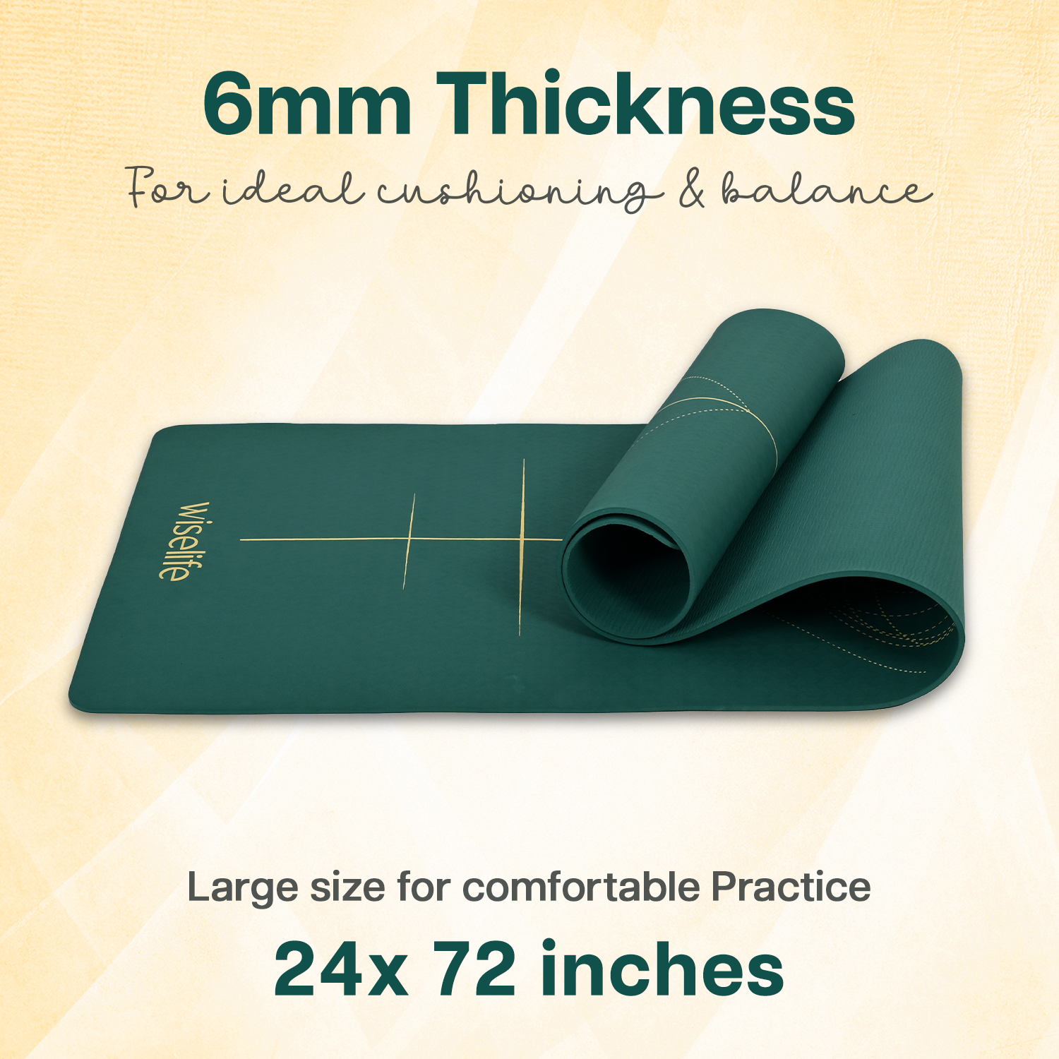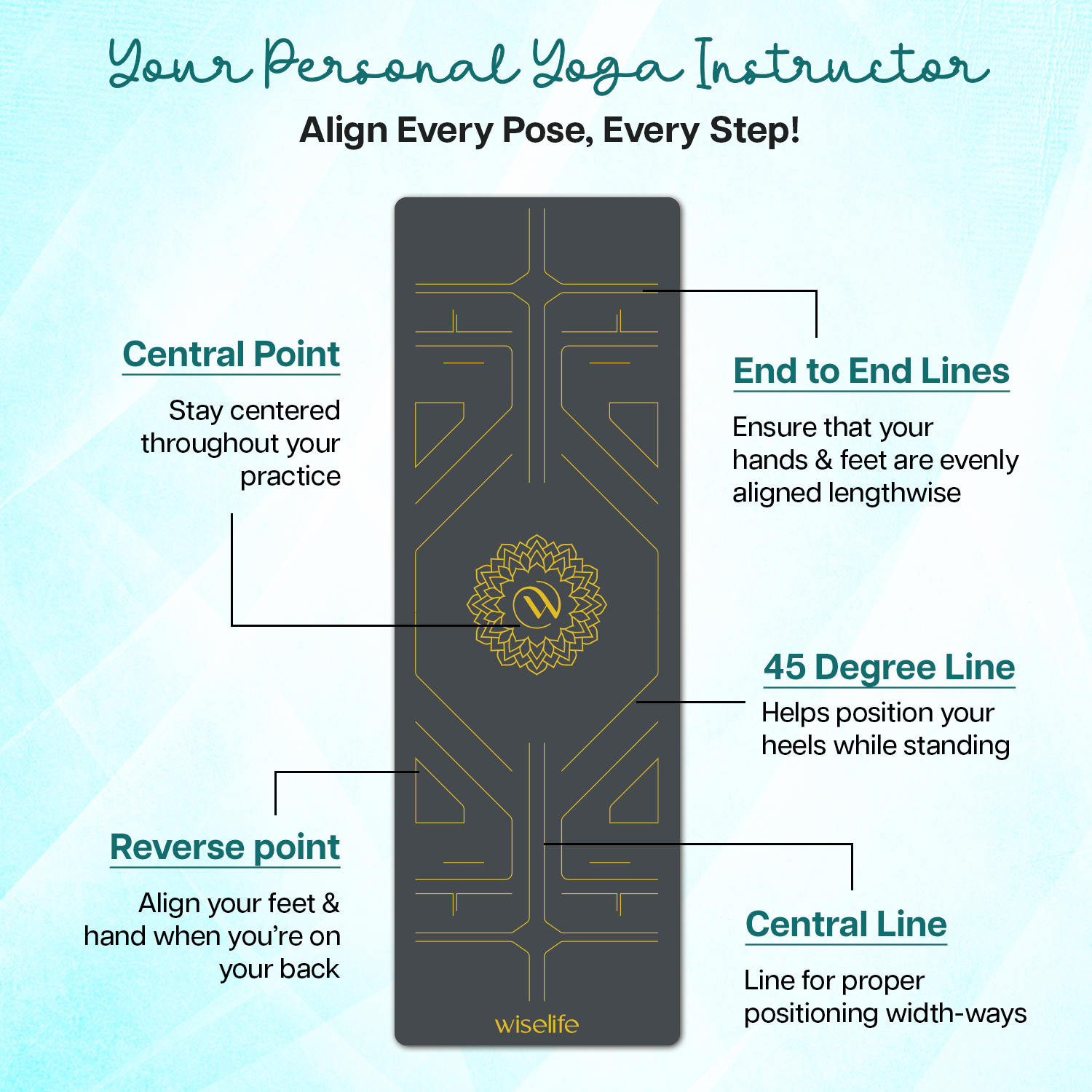 - ALIGNMENT LINES: Guided alignment lines printed directly onto the mat for easy positioning and proper alignment during yoga practice.