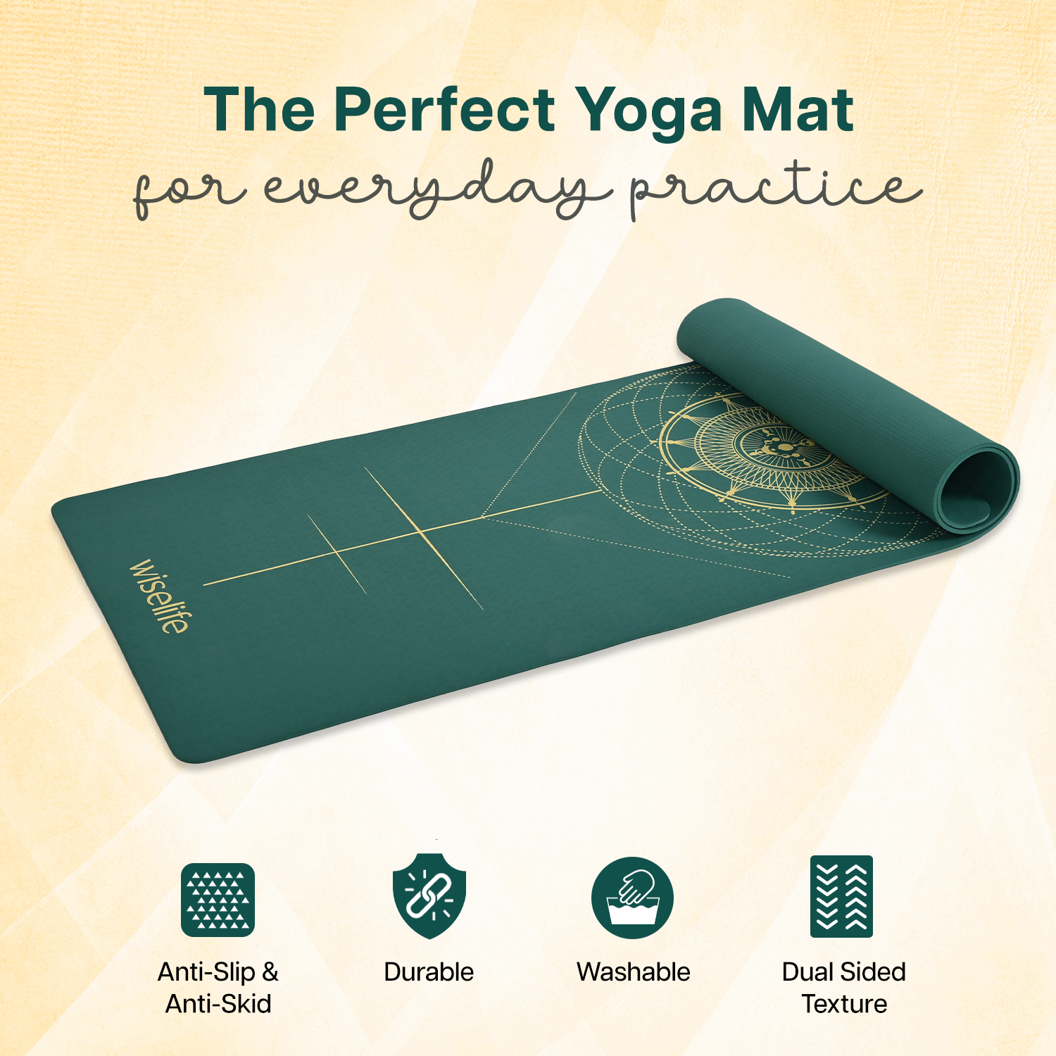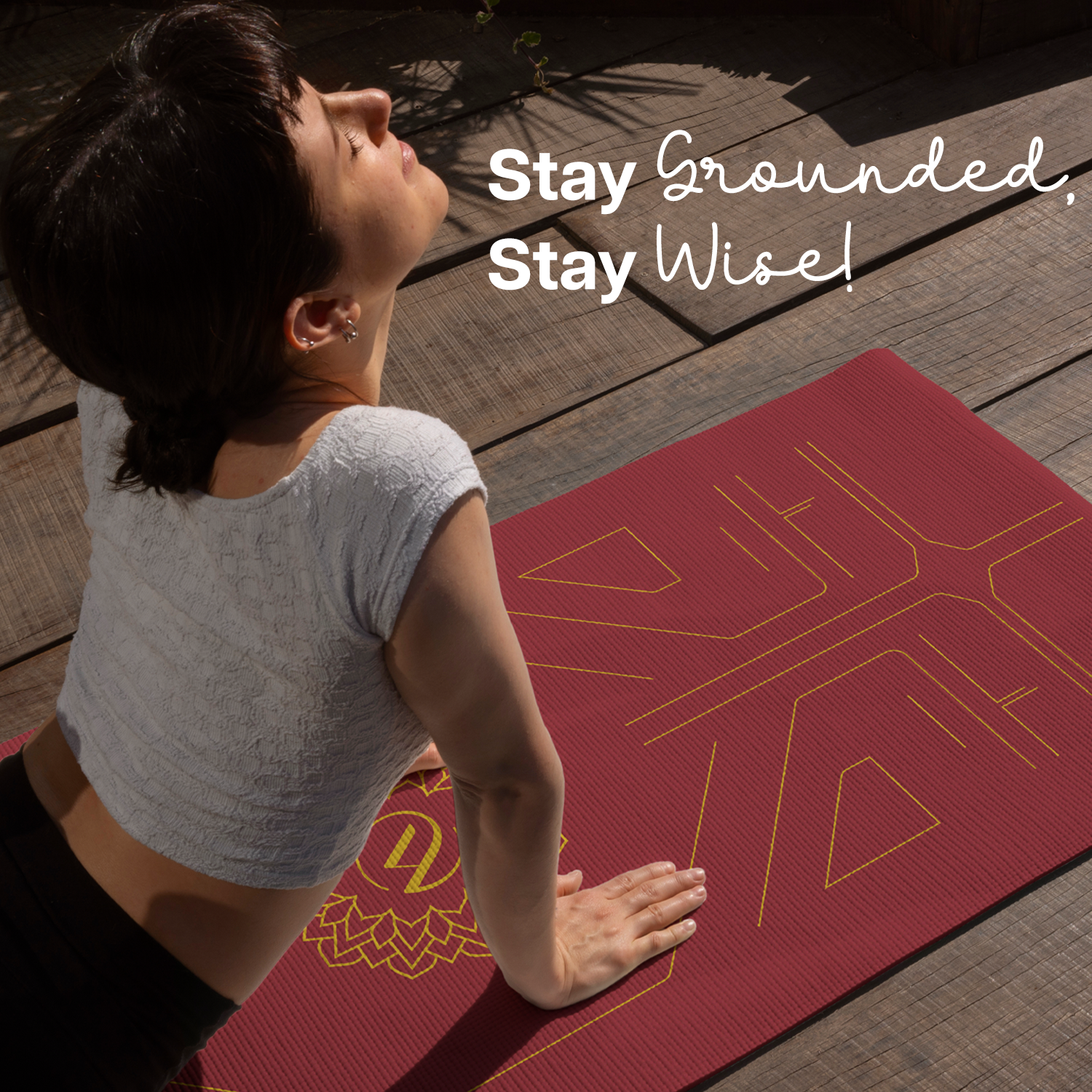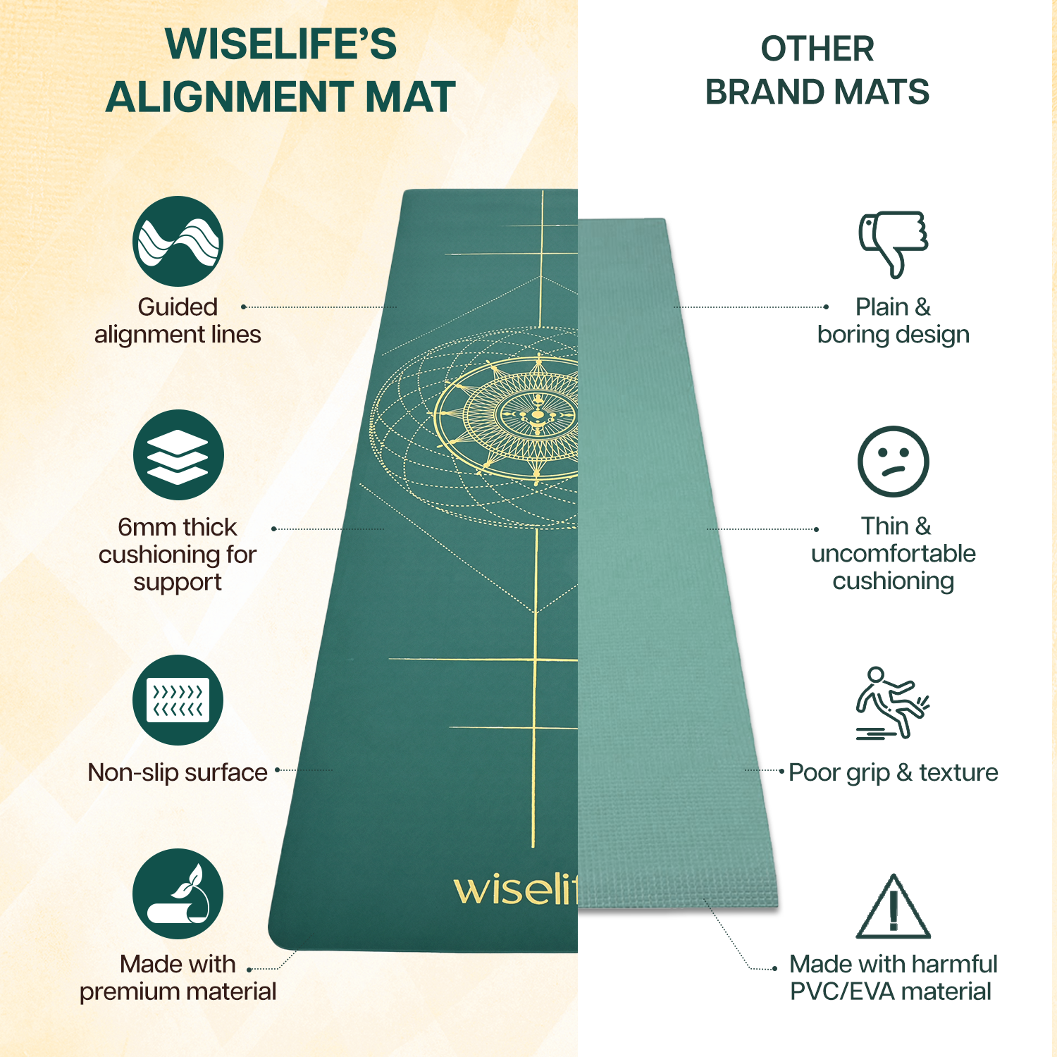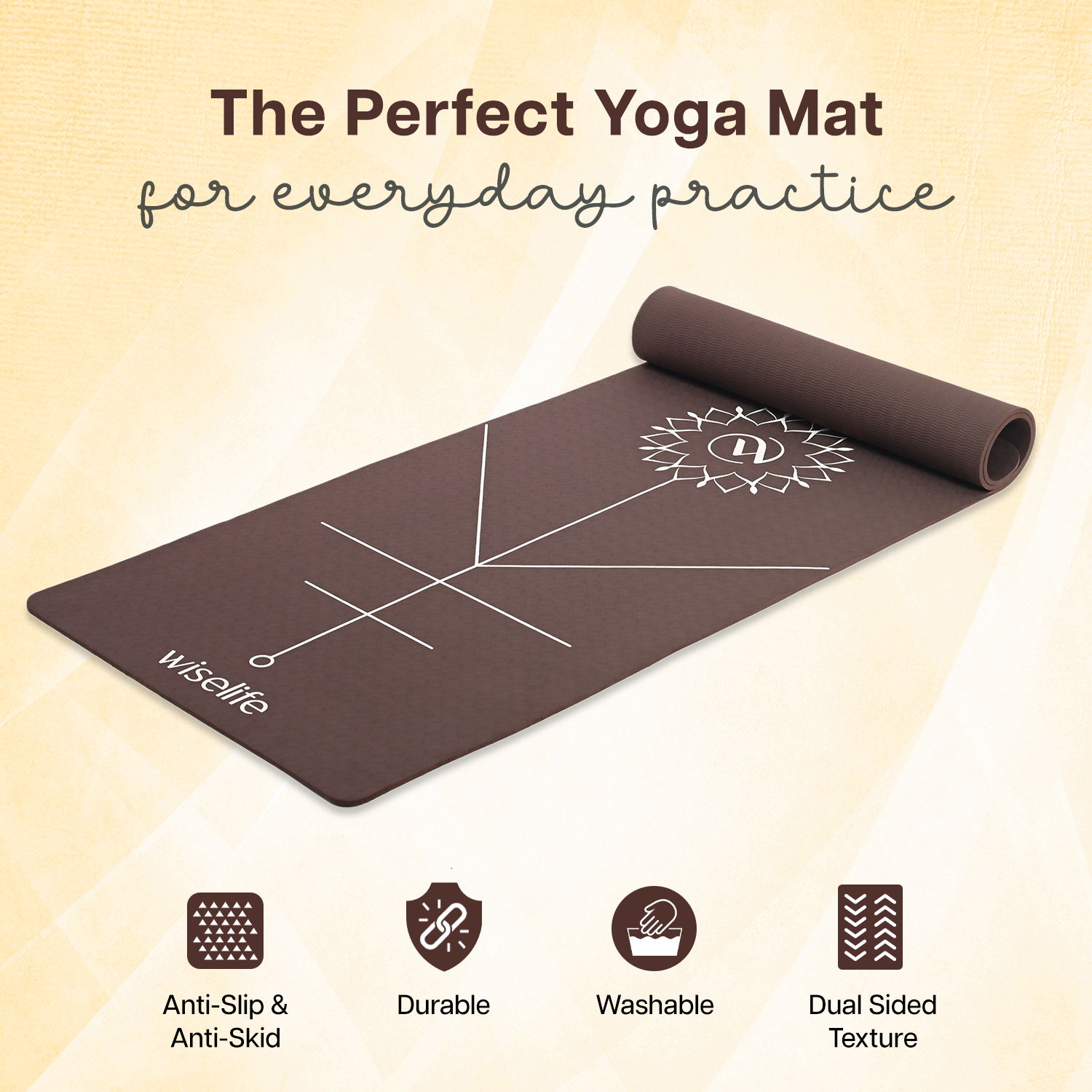 - ALIGNMENT LINES: Guided alignment lines printed directly onto the mat for easy positioning and proper alignment during yoga practice.