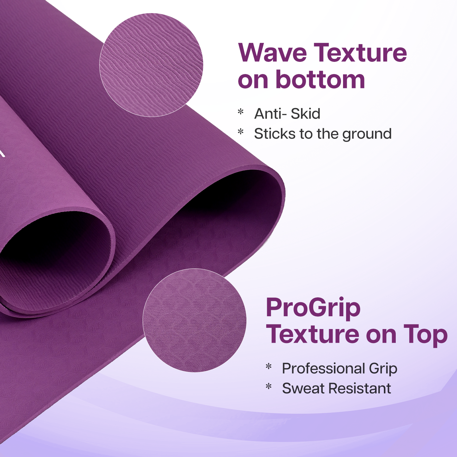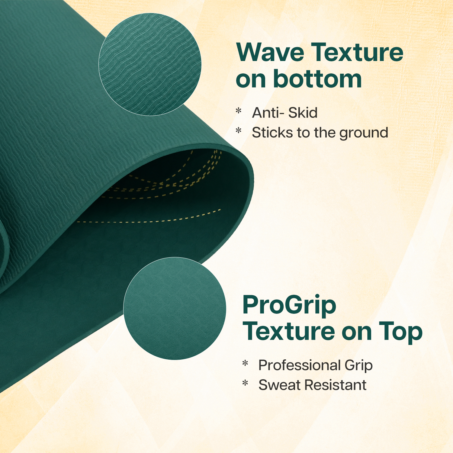 - NON-SLIP SURFACE: A two sided textured surface that enhances grip and prevents slipping during practice.