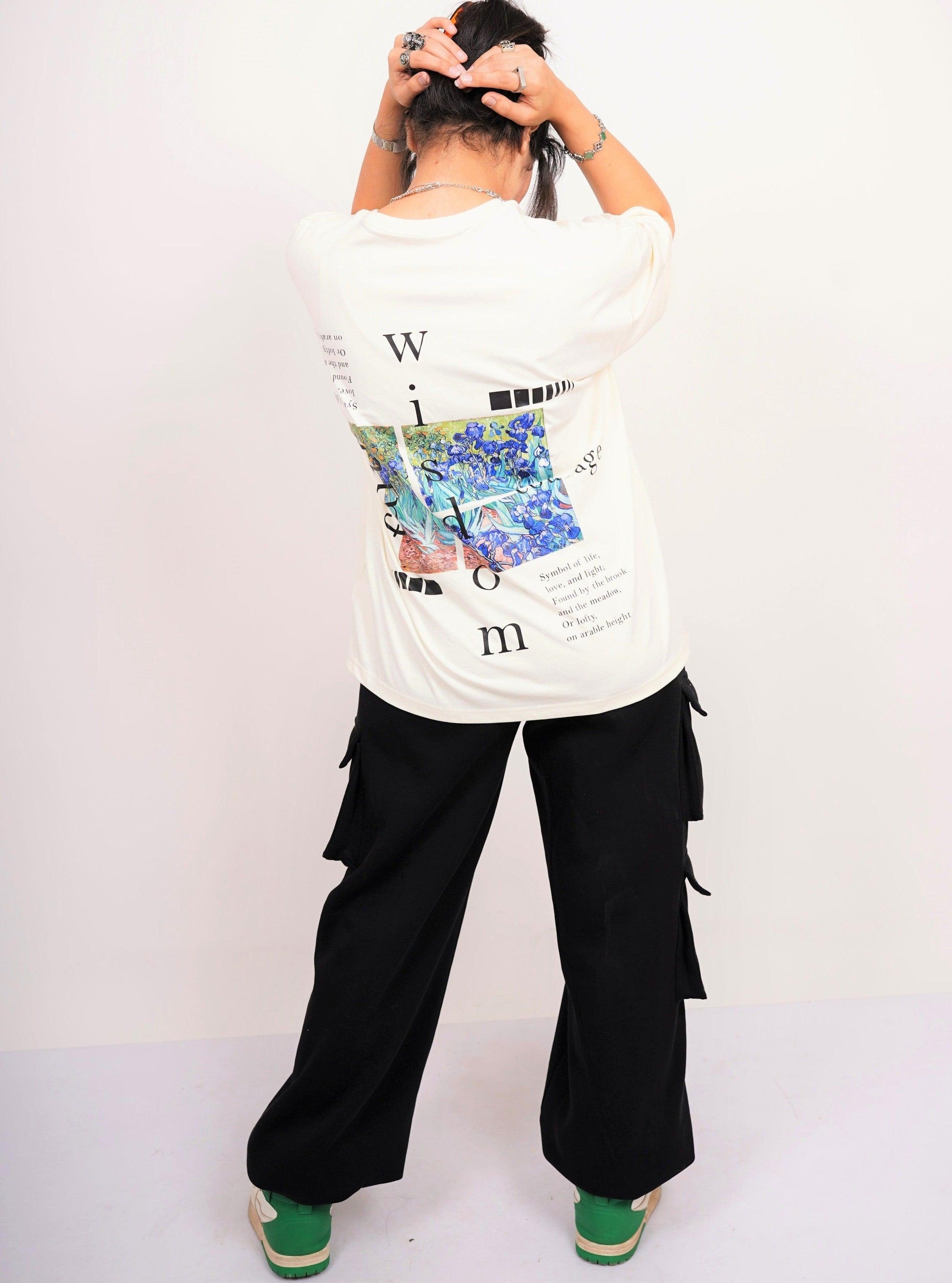 Introducing our Van Gogh inspired drop sleeved tee, the perfect addition to any art lover's wardrobe. This beautiful tee features a stunning rendition of Vincent Van Gogh's iconic painting "Irises" printed on the back
