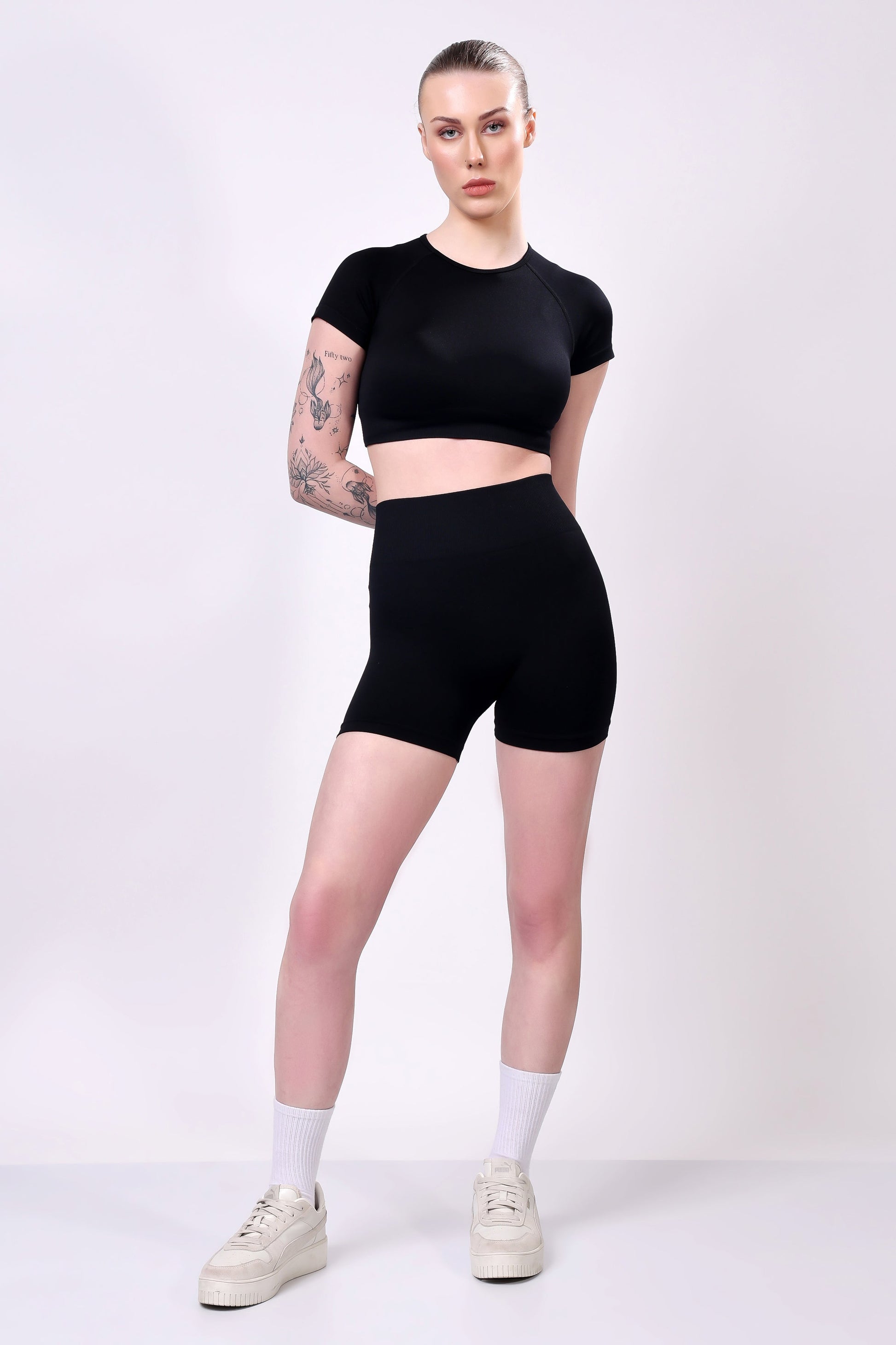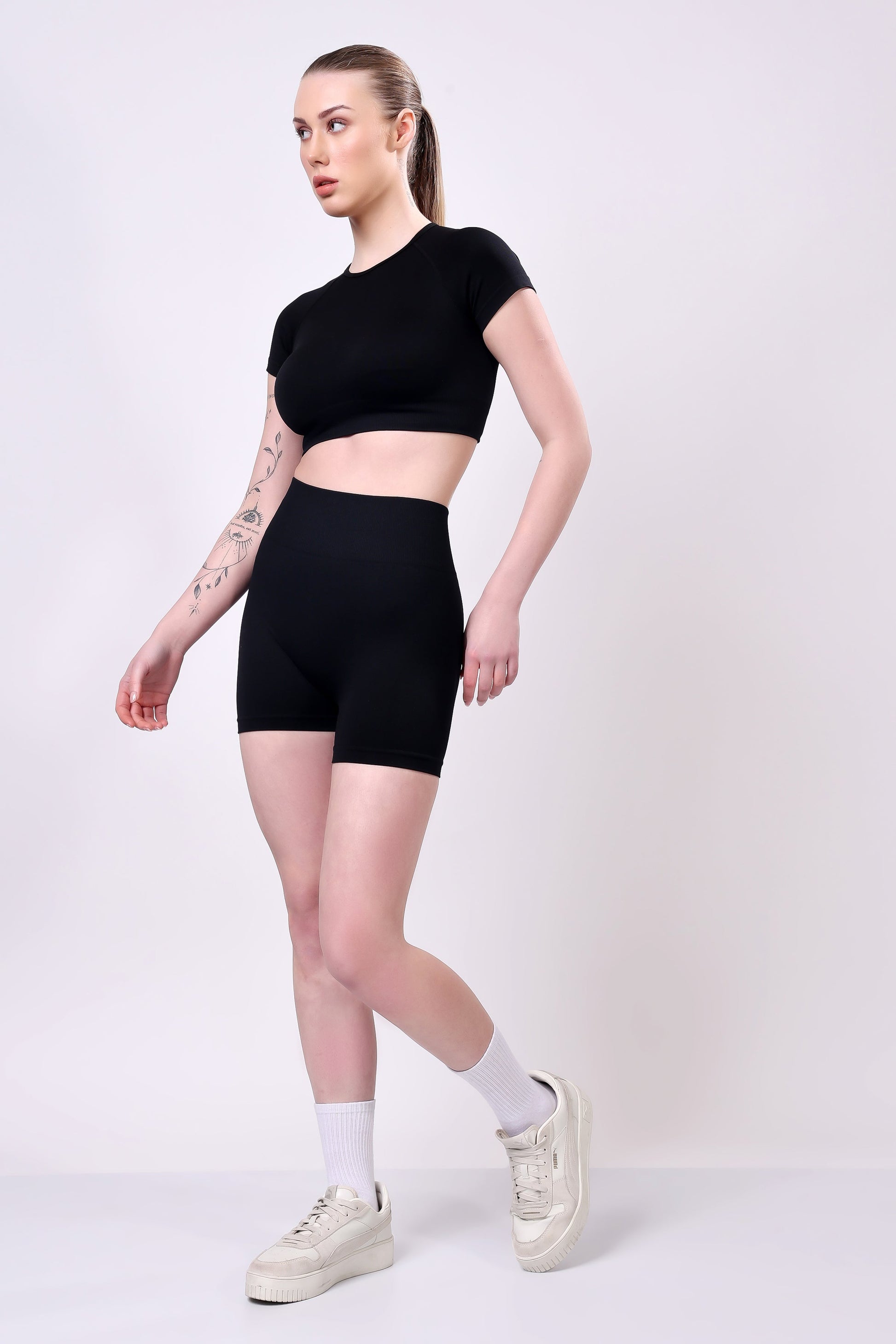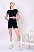 Elevate your activewear wardrobe with this Seamless Crop Tee & Biker Shorts Set. Designed for style, comfort, and performance, this set is perfect for workouts, casual outings, or lounging at home. The set includes: