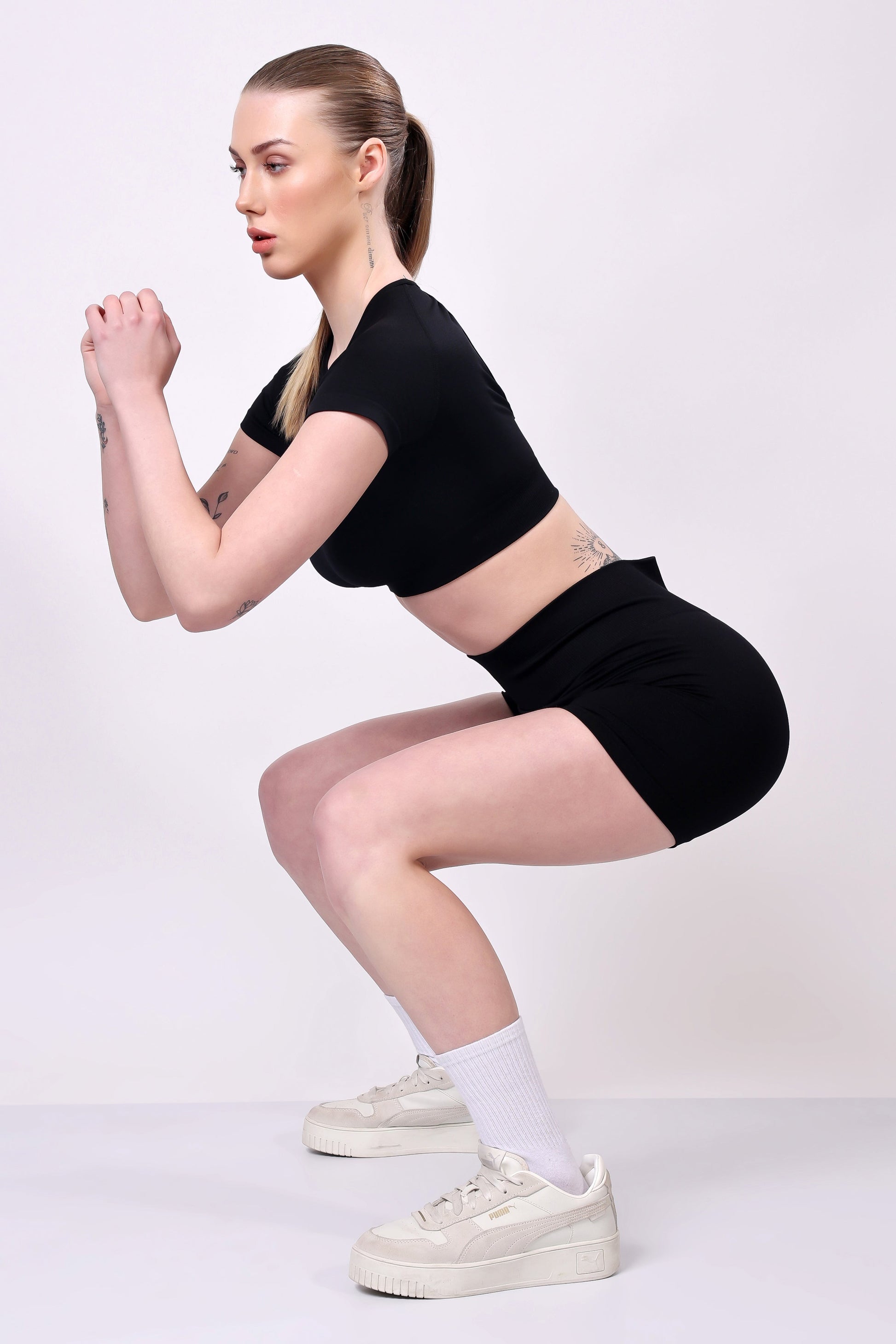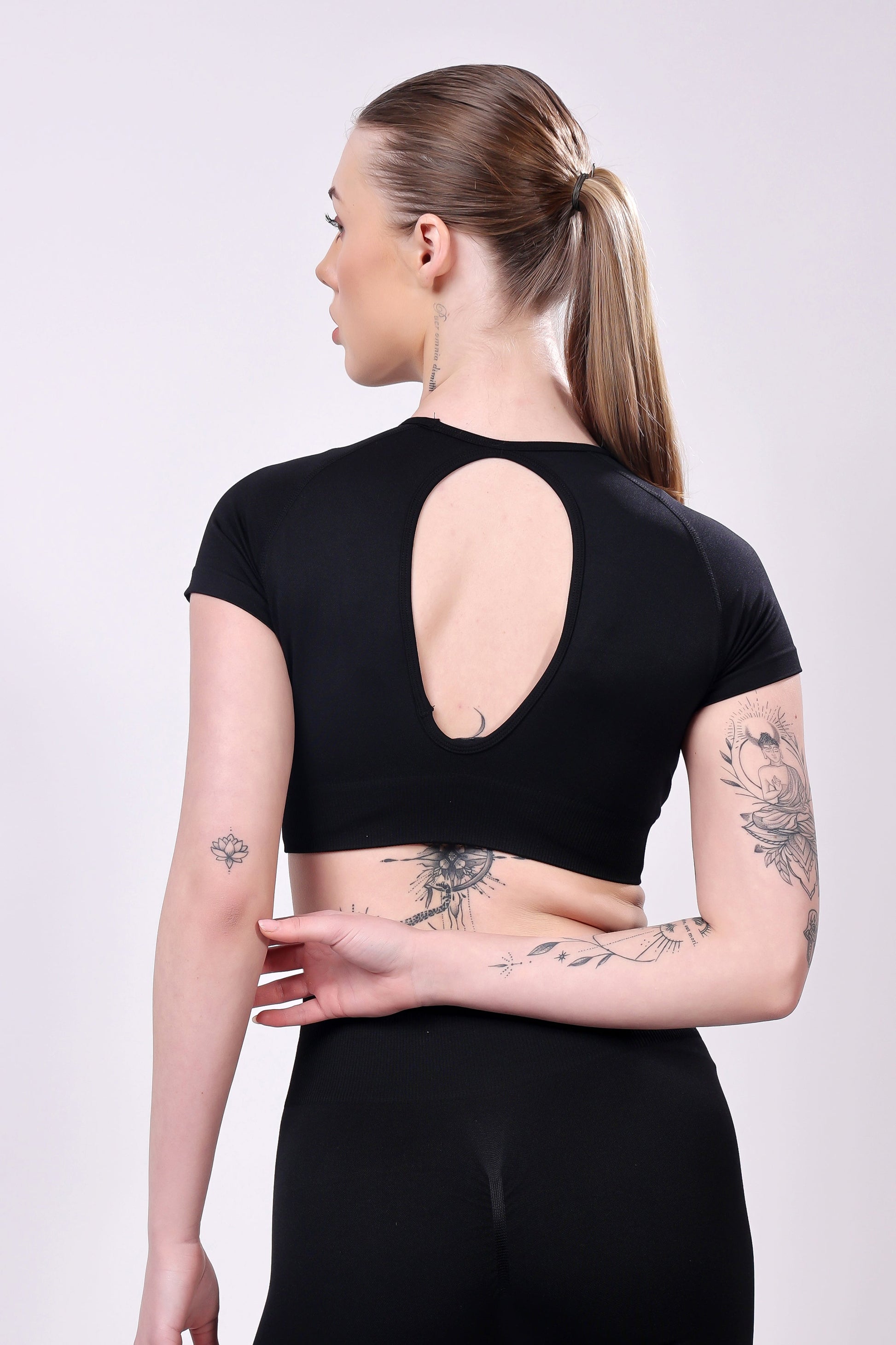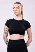 - A sleek, short-sleeve crop top that provides a secure yet flexible fit.