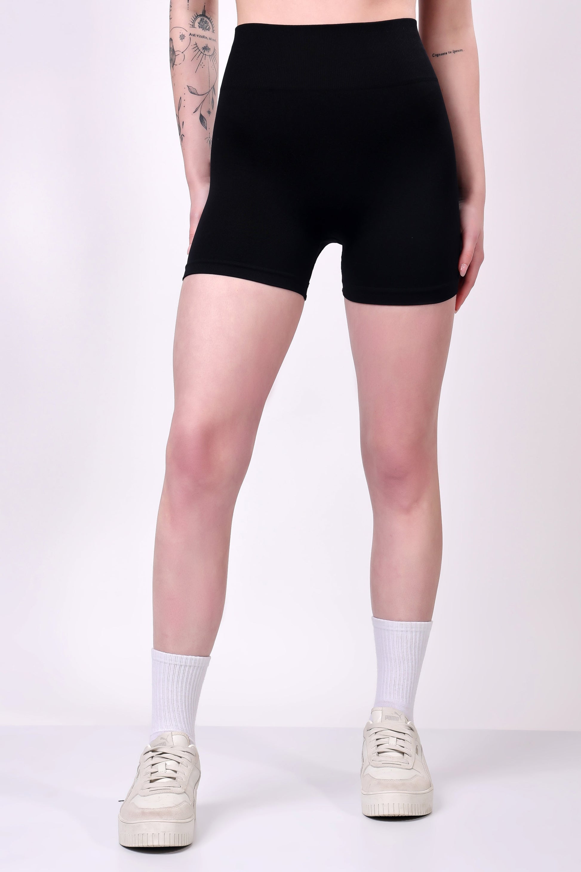 - High-waisted biker shorts with a seamless design for a flattering silhouette and full range of motion.