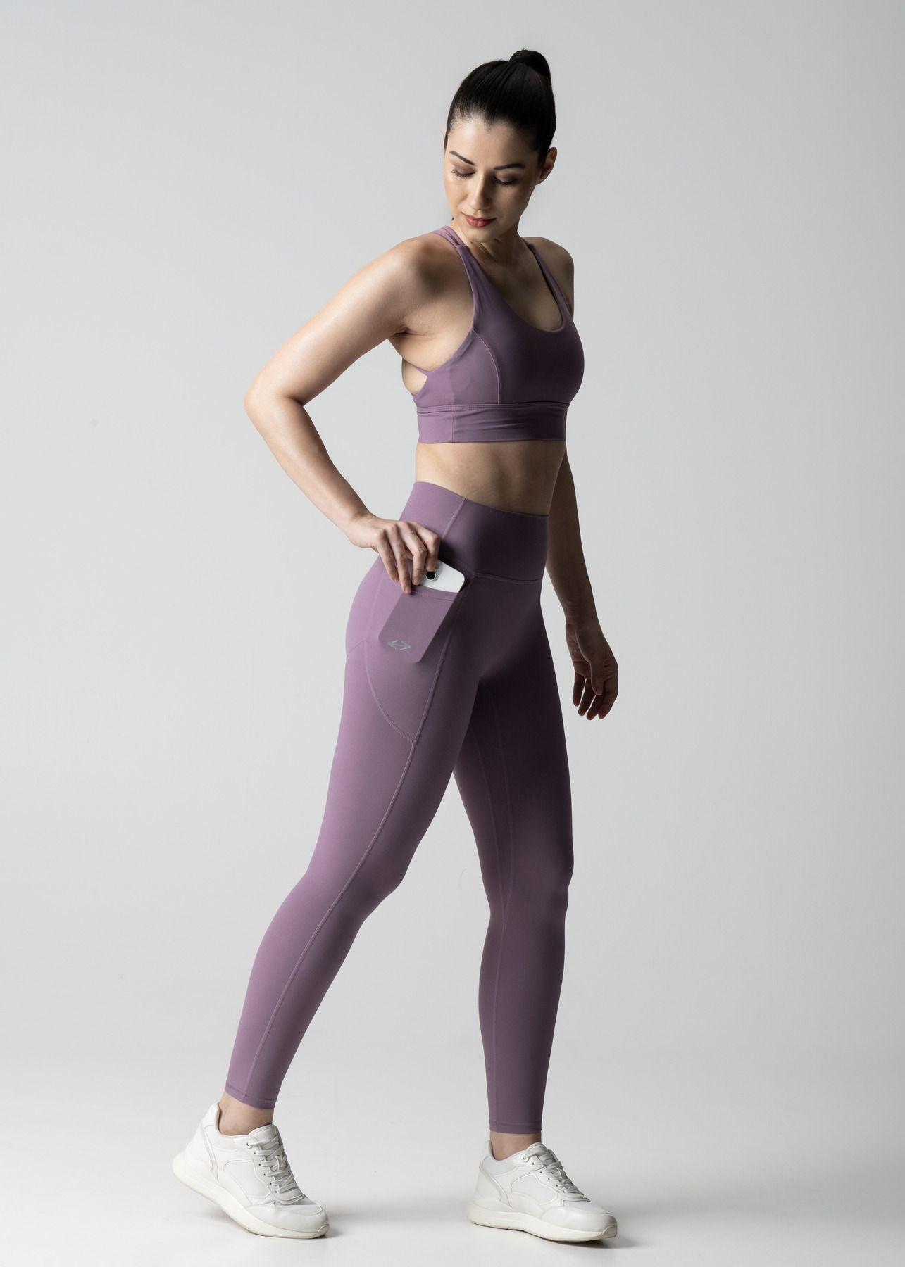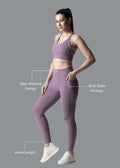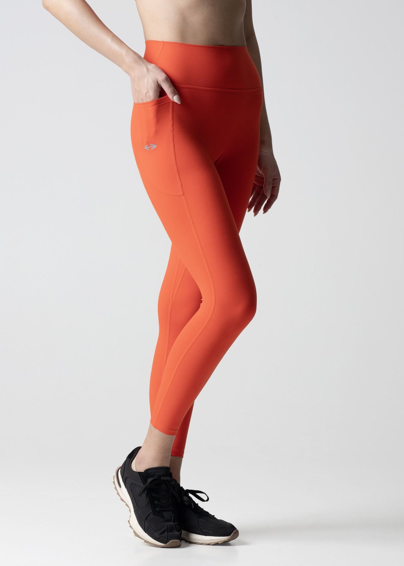 These ankle-length leggings are designed to keep up with your every move—whether you're training, stretching, or on the go. The sleek ankle-length cut offers a streamlined, versatile look that pairs effortlessly with your favorite footwear. Side pockets add convenience, letting you stash essentials with ease. A curved back panel enhances shaping and provides a comfortable, contoured fit, while the high waistband offers core support, tummy control, and a flattering silhouette. Finished with subtle logo branding, these leggings strike the perfect balance between performance and style.