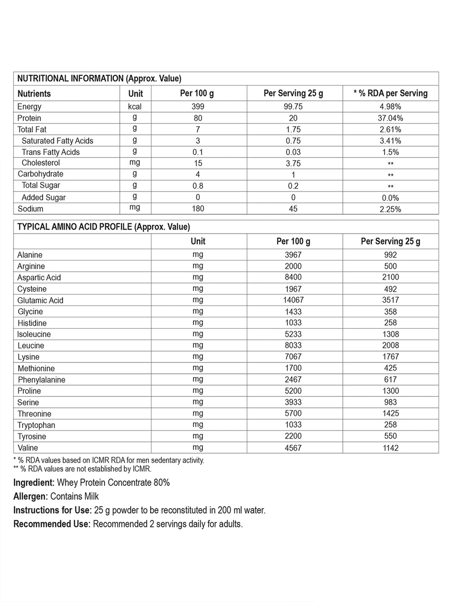 Whey Unflavoured formulation provides 80% whey protein content for people looking for a genuine whey protein supplement without any flavour, colour, or other food additives.