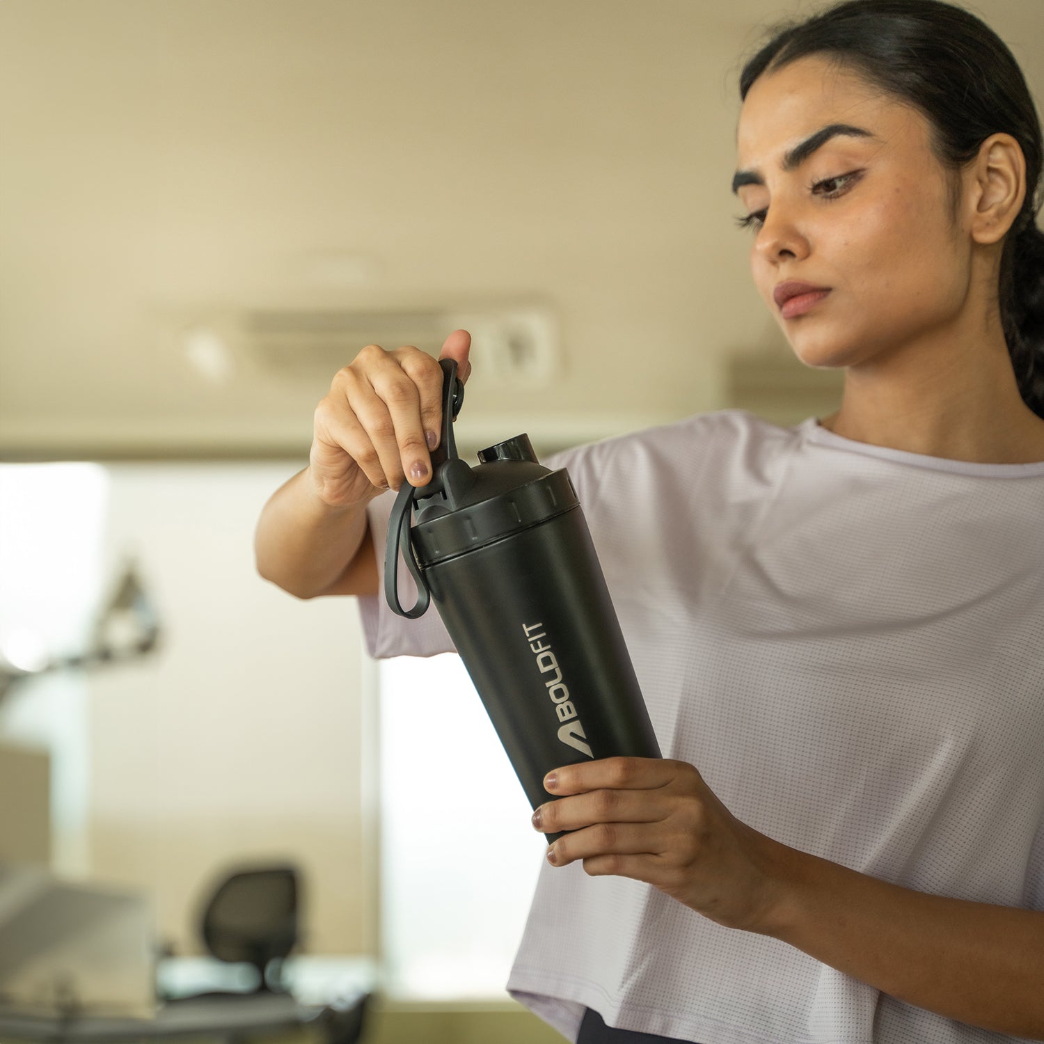 Shake it up with the Boldfit Whirlwind Stainless Steel Gym Shaker Bottle, your perfect companion for staying hydrated and fuelled during workouts. Crafted with high-quality stainless steel, this shaker not only keeps your drinks cold but also features a leak-proof design to ensure no spills during your hustle.