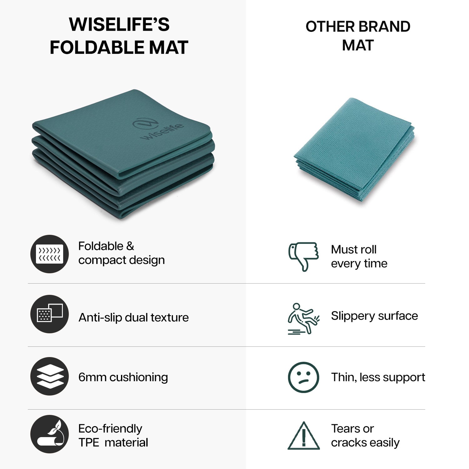 Wiselife Foldable Travel Yoga Mat TPE 6mm