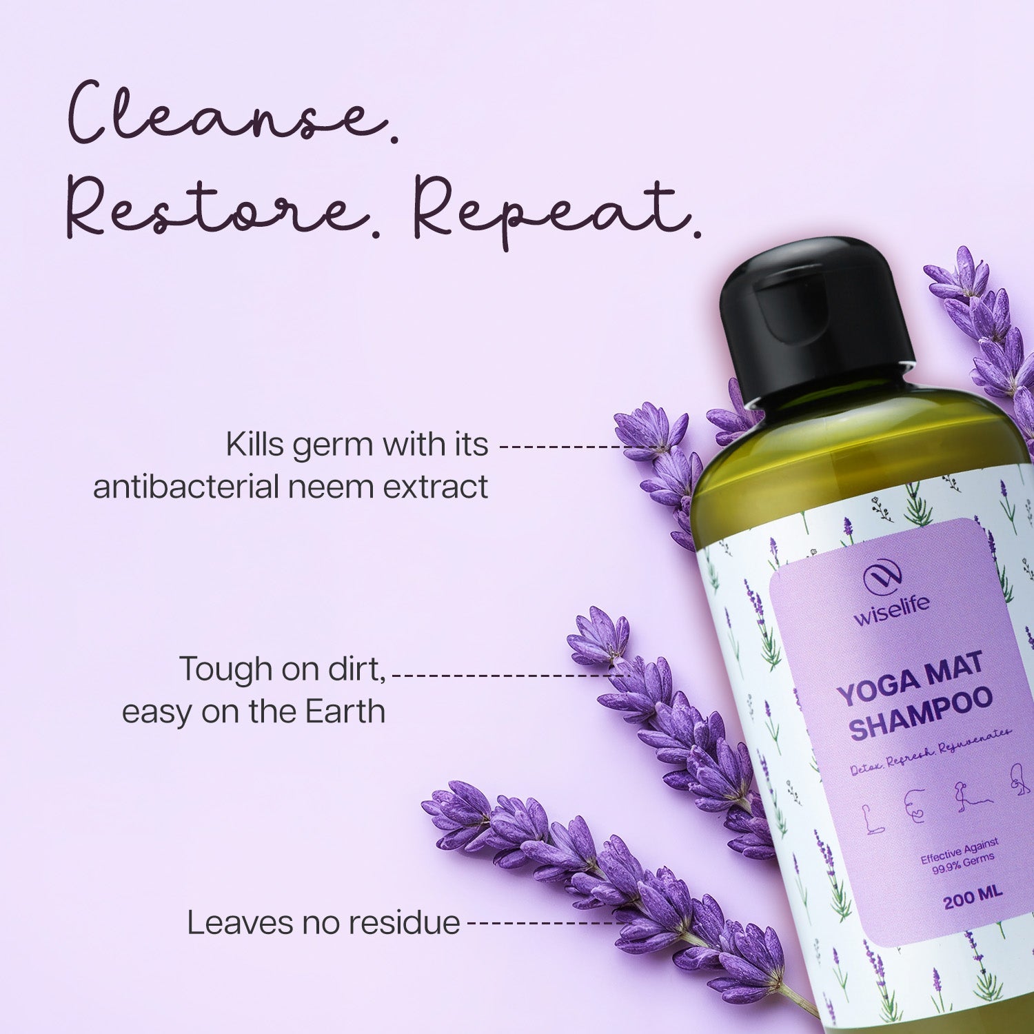 Wiselife Yoga Mat Shampoo- Lavendar 200ml