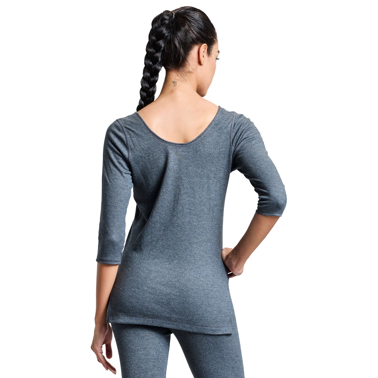 Beat the chill with the ThermaCore Top, designed to be your go-to base layer for cold weather. Crafted from a cotton-poly blend, this thermal top keeps you cozy with natural insulation while its ribbed fabric provides a comfortable stretch. Featuring BOLDTECH moisture management and anti-microbial properties, it's perfect for layering under any outfit. With full sleeves and a deep round neck for extra coverage, the ThermaCore Top is all about warmth, comfort, and effortless style—perfect for your winter adventures!
