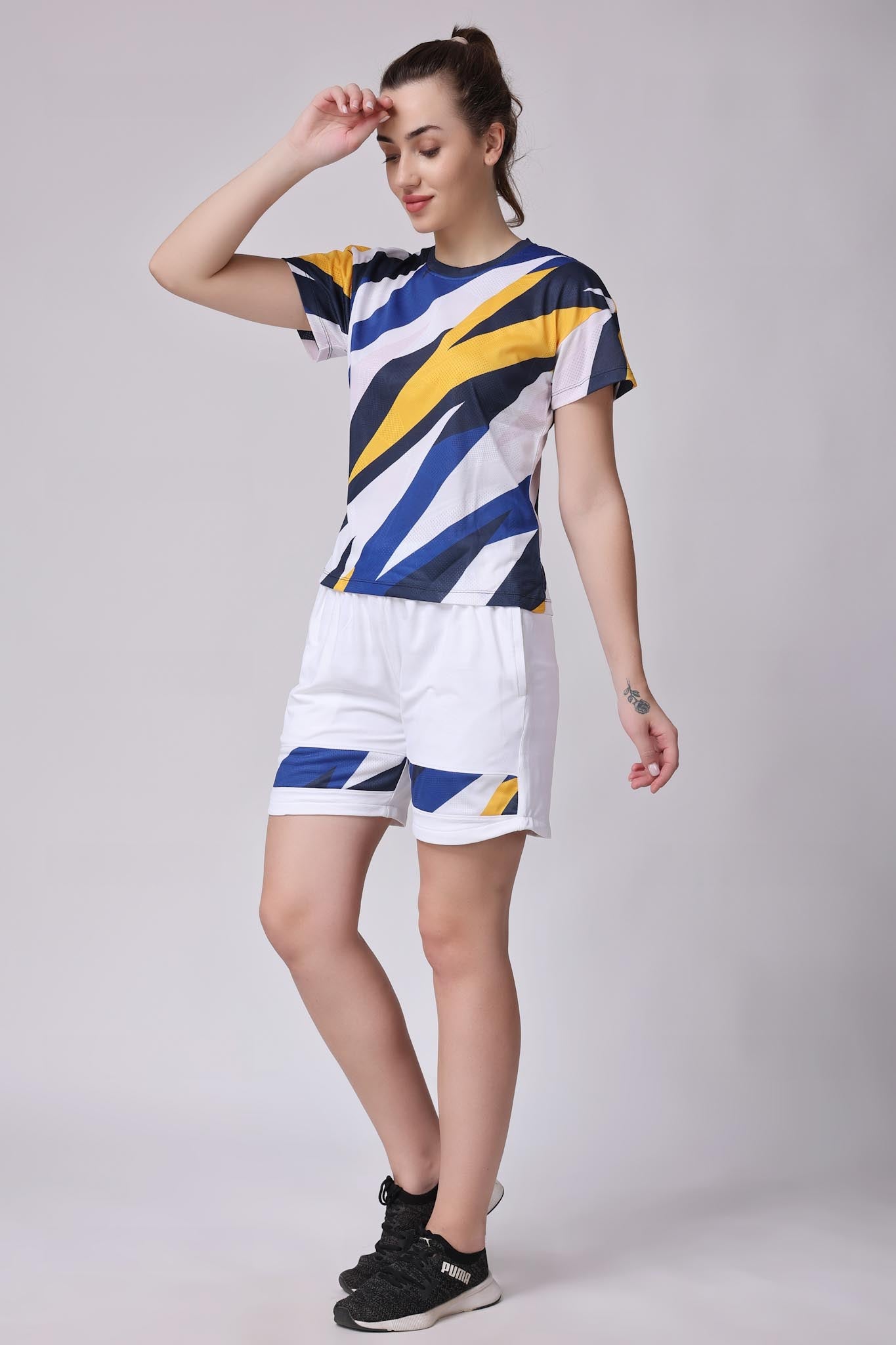 | - This coord set features a clean white base color that provides a versatile and timeless look. White creates a crisp and fresh aesthetic, allowing the blue and yellow prints to stand out and make a statement. The combination of these colors creates a lively and energetic look, perfect for adding a touch of excitement to your matches. Crafted from a premium blend of breathable and lightweight fabrics, this set ensures maximum comfort and freedom of movement during your court time or other physical activities. - Regular Fit - Jacquard Structure - Breathable & Lightweight - Versatile & Stylish - Moisture Wicking fabric - 100% Polyester - Machine Wash (wash it with similar color garments) |