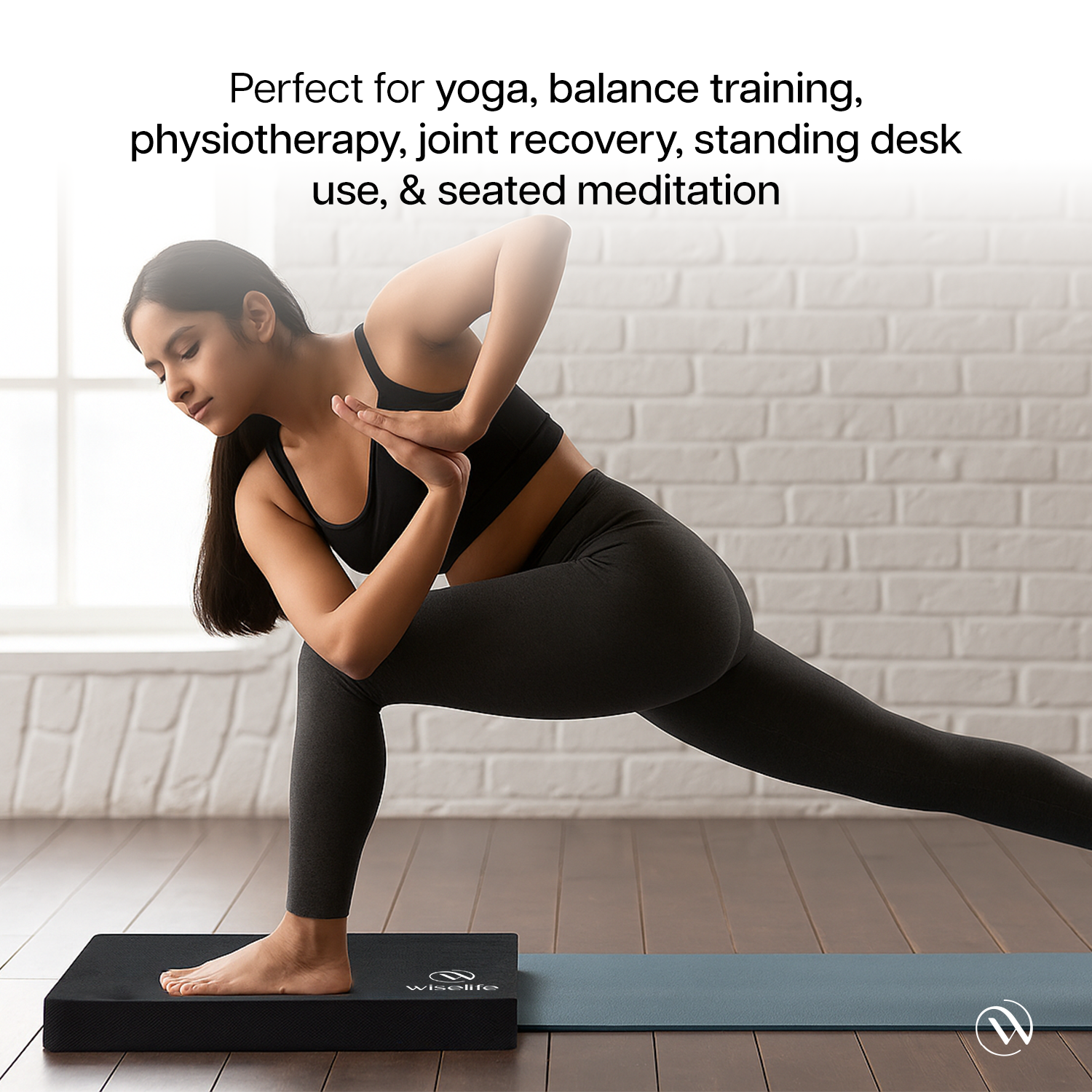 JOINT FRIENDLY TPE-FOAM: Crafted from high-density, eco-friendly TPE, the pad gives you a soft-yet-supportive surface to work on. Its closed-cell structure resists sweat and moisture, making it easy to clean and maintain. Whether you're doing slow yoga stretches, ankle rehab, or balance drills, the cushion absorbs pressure and protects your knees, hips, and back. It’s comfort with every step, pose, or pause
