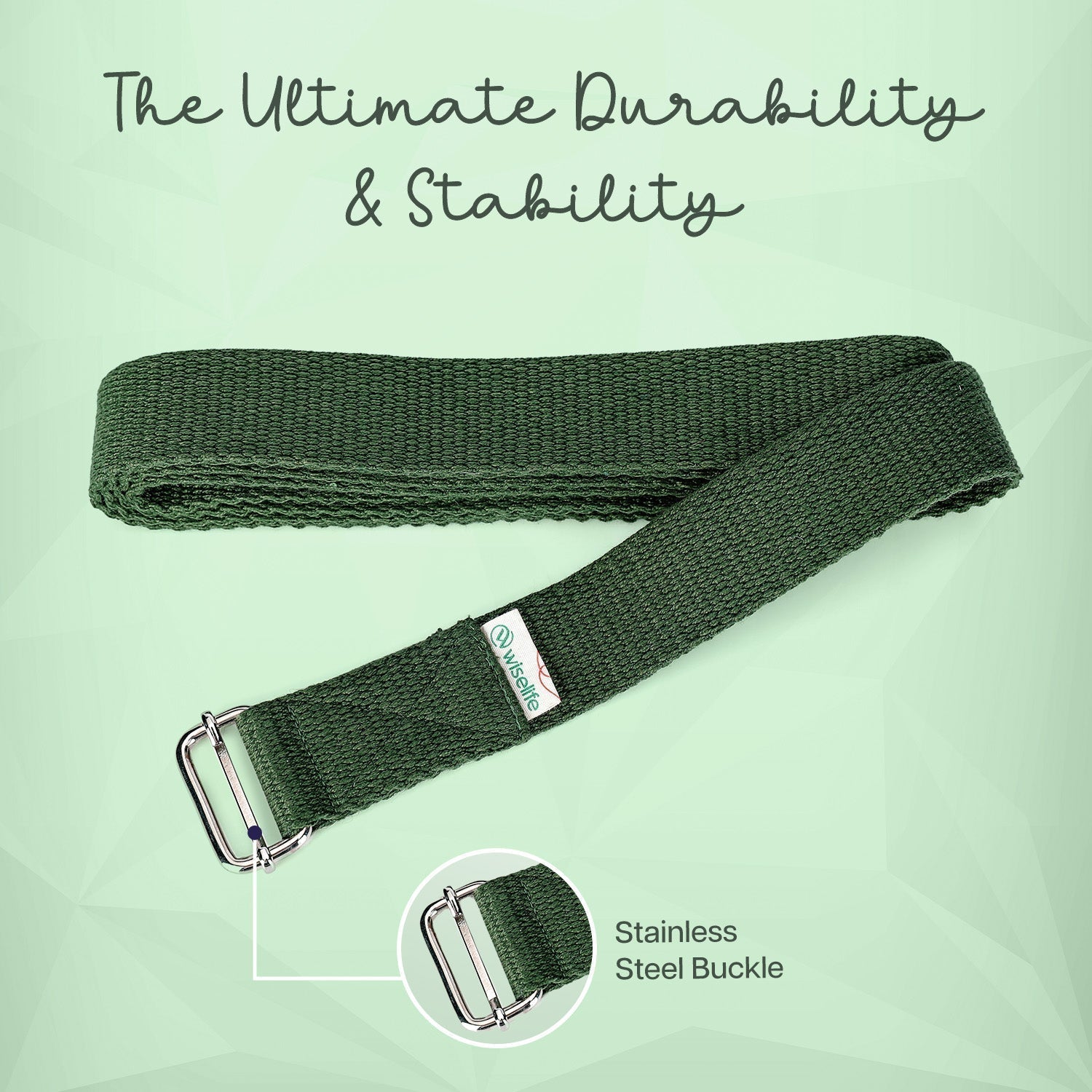 - STRONG GRIP: This strap is made of high quality thick and reinforced cotton and has an adjustable Steel buckle. Steel buckles are strong and can be adjusted and snugly secured for various poses and alignments