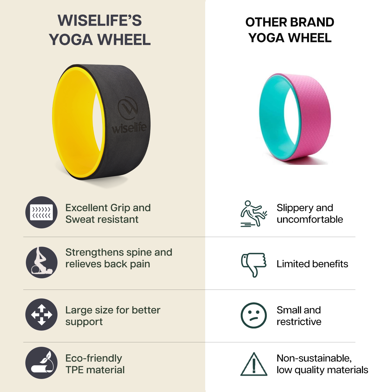 - SIMPLE AND EFFECTIVE LASTING BACK PAIN RELIEF: Wiselife yoga back wheel is designed for everyday people who suffer from chronic back pain. Use it to help relieve myofascial pain and muscle tension along the spine in your upper back, lower back and neck.